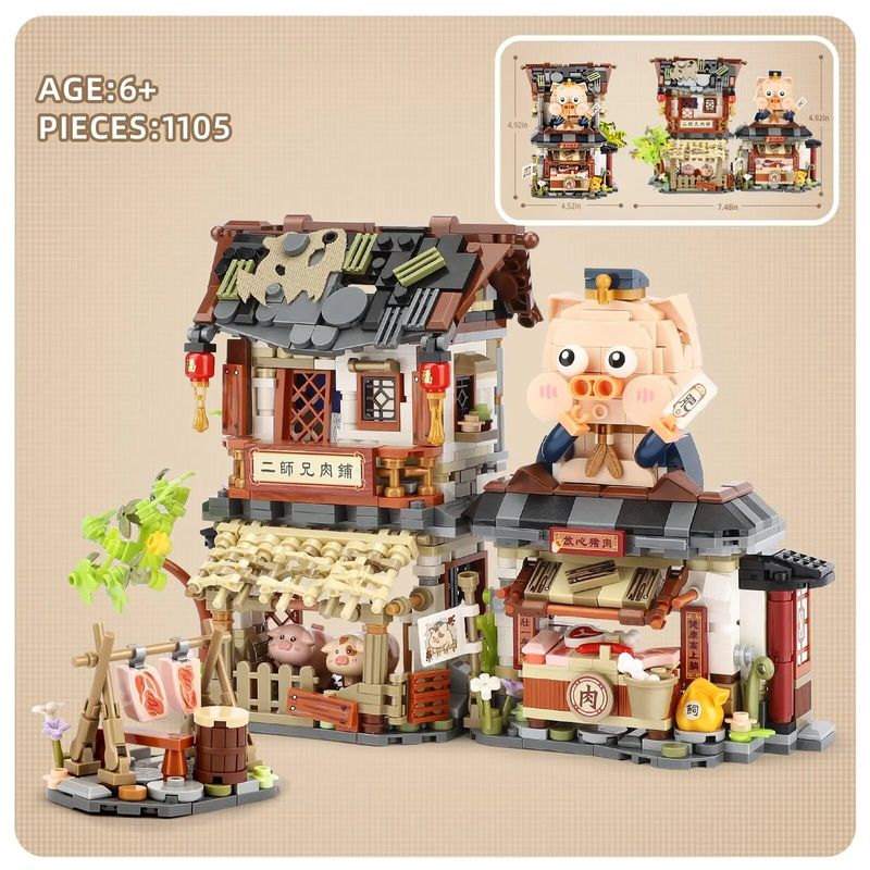 Loz Street View Series Building blocks Izakaya Shaved Ice Shop Takoyaki Shop Coffee shop Panda Tea House model children's gifts
