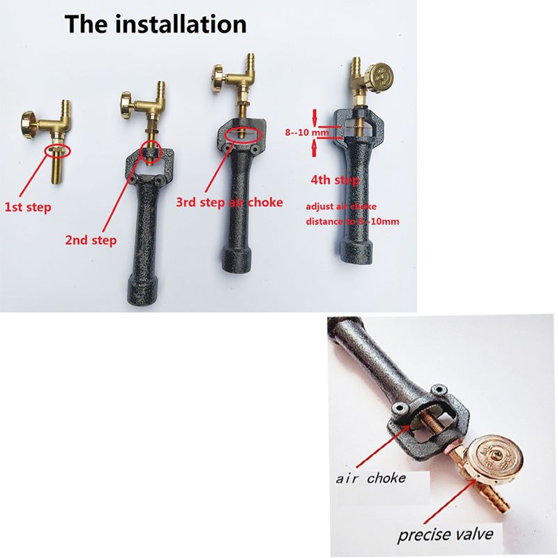There is a air choke on the top of our burner – it regulates the amount of air that is mixed with the propane during combustion,so you can get different quantity of air on different pressure.