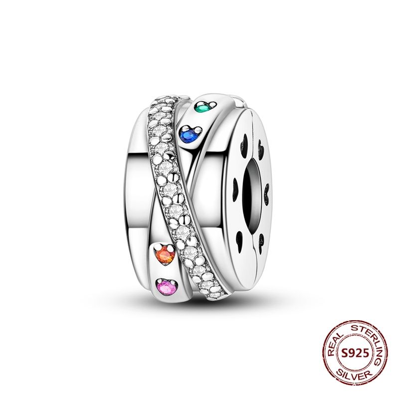 Lucky Clover Clip Charms 925 Sterling Silver Original Black Cat Stopper Clamp Silicone Spacer Charm For DIY Jewelry Bracelet