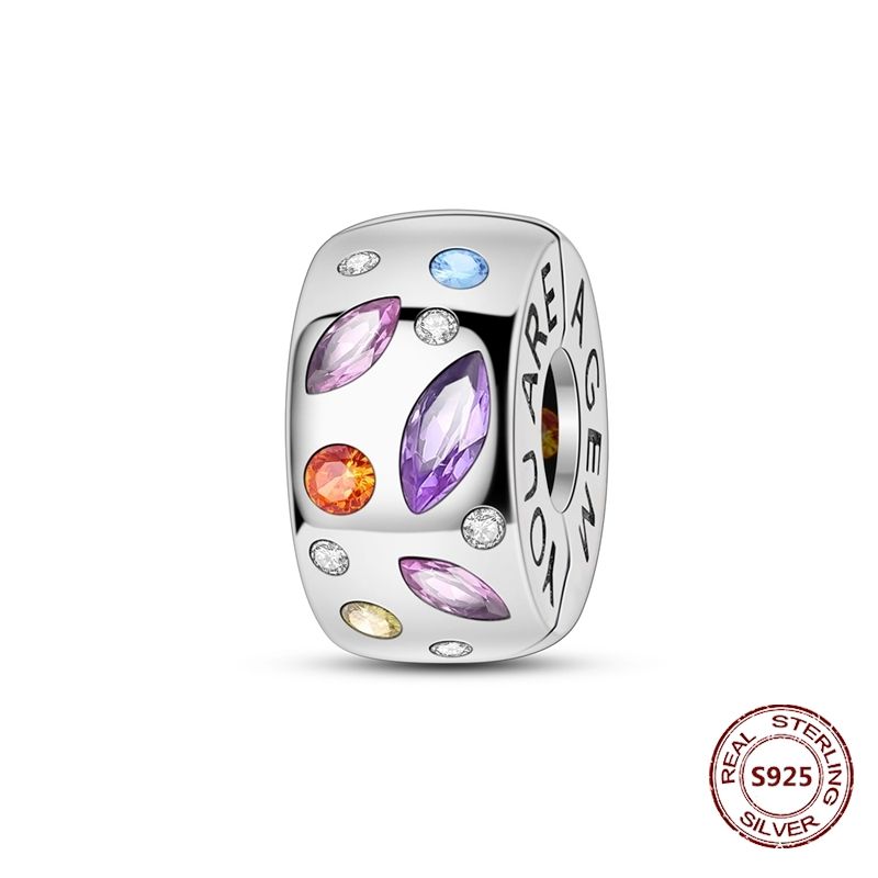 Lucky Clover Clip Charms 925 Sterling Silver Original Black Cat Stopper Clamp Silicone Spacer Charm For DIY Jewelry Bracelet