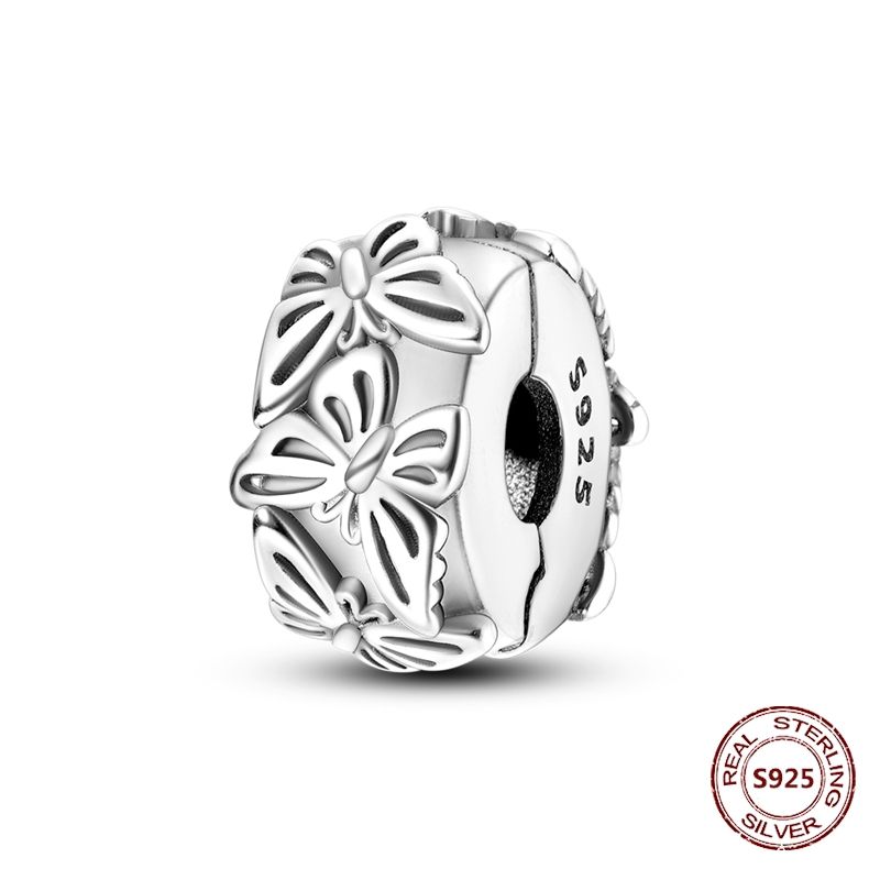Lucky Clover Clip Charms 925 Sterling Silver Original Black Cat Stopper Clamp Silicone Spacer Charm For DIY Jewelry Bracelet