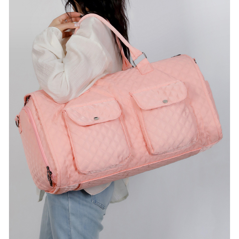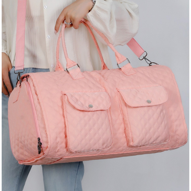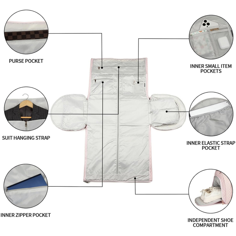 Luggage Bag With Shoe Bag Coat Storage Bag Shoulder Hang Trolley Pink With pull rod