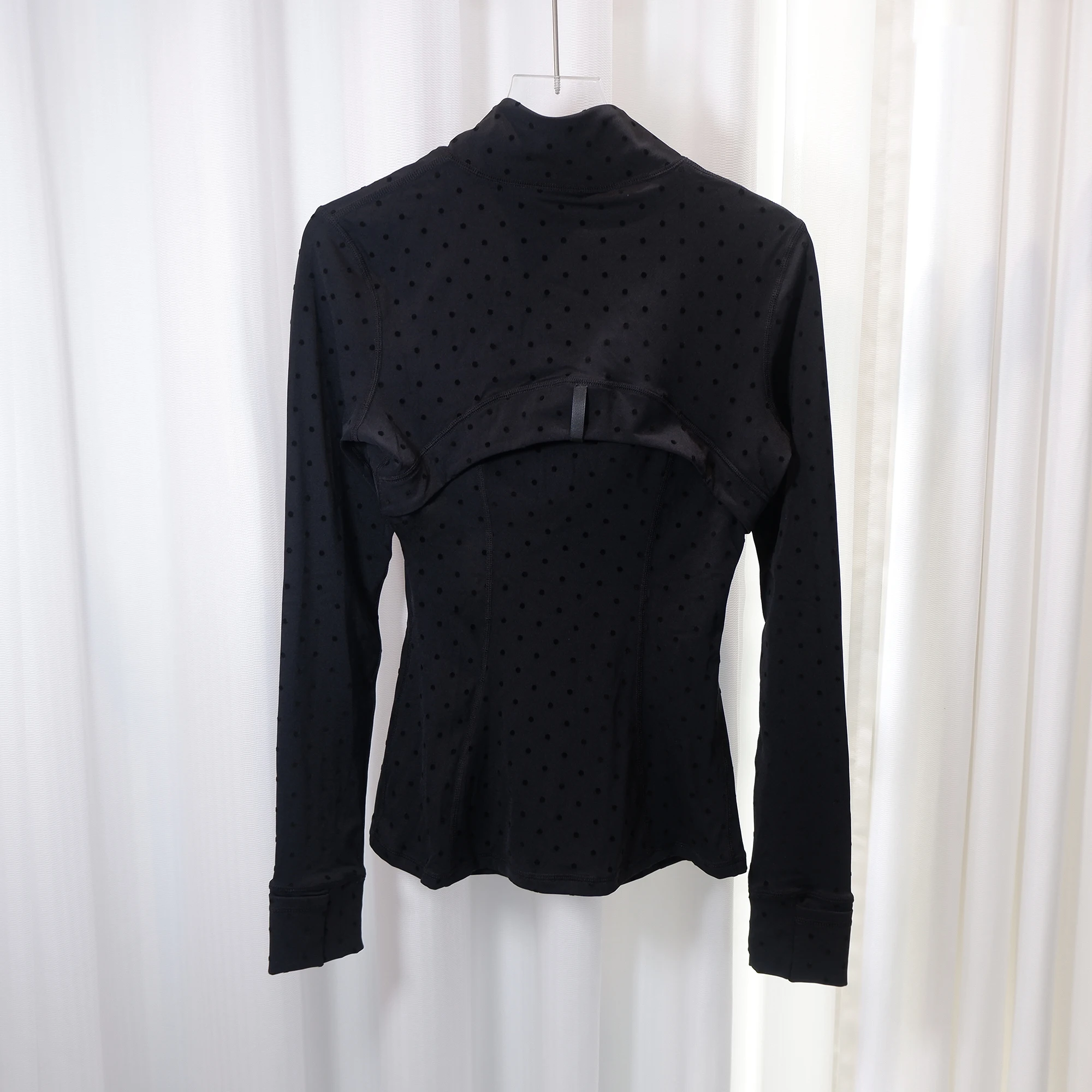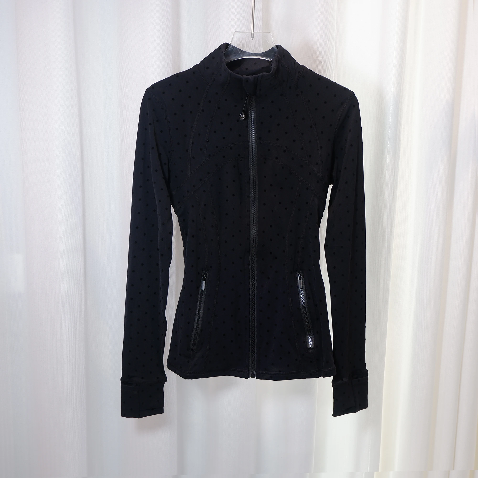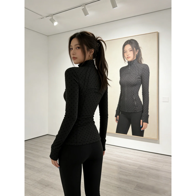 LULU FLORA flocked polka dot jacket, elegant small stand collar long-sleeved outerwear, quick-dry and breathable for sports yoga