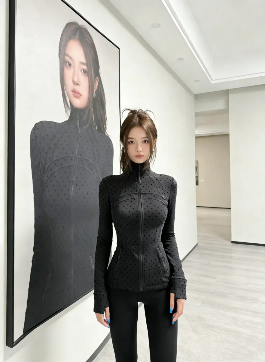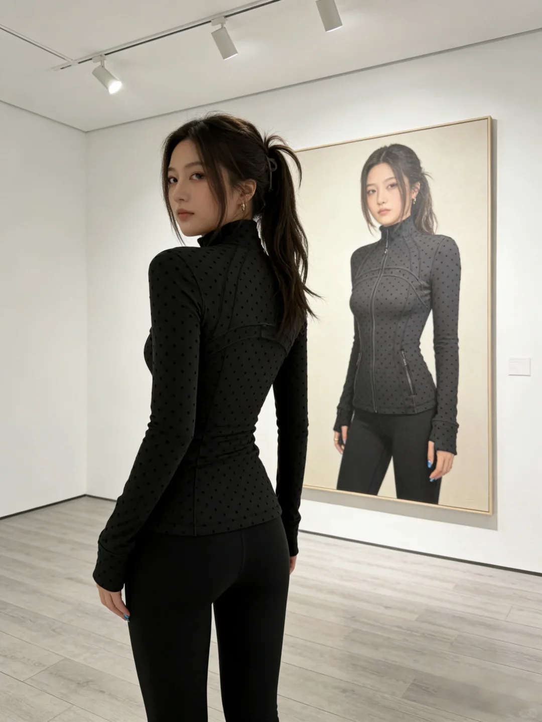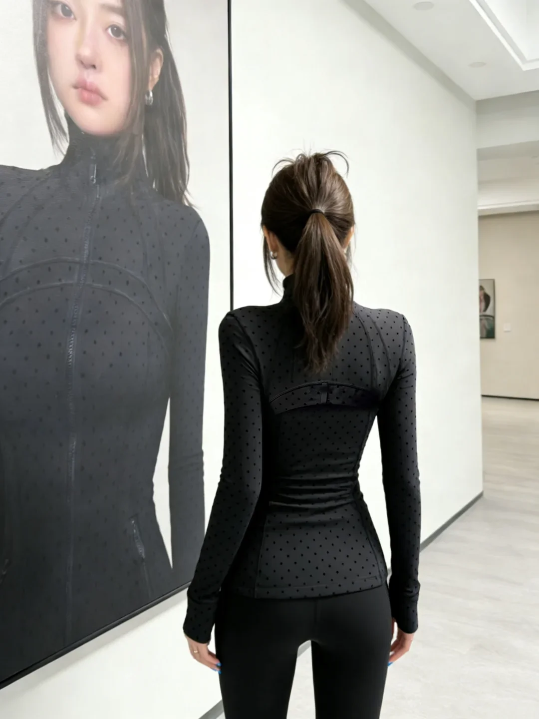 LULU FLORA flocked polka dot jacket, elegant small stand collar long-sleeved outerwear, quick-dry and breathable for sports yoga