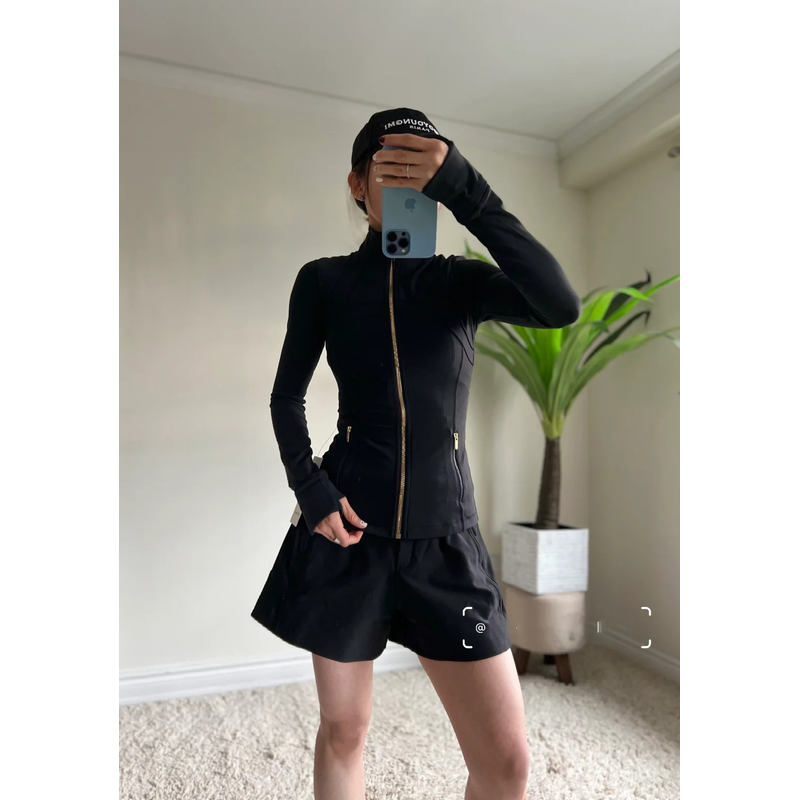 LULU FLORA New version of gold zipper slimming jacket yoga stand up collar jacket slim fit quick drying sports thin version