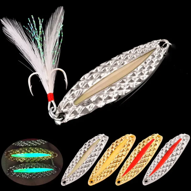 Luminous Metal Spinner Spoon Fishing Lure Hard Baits Sequins Noise Paillette with Feather Treble Hook Fishing Tackle 2.5g-20g