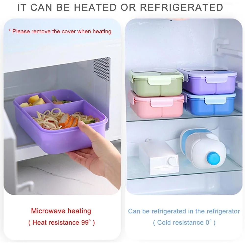 2.Crafted from sturdy PP, AS, and silicone materials, this lunch box boasts a bright color, leak proof seal, and mutiple compartments to keep your food freshness and organized.