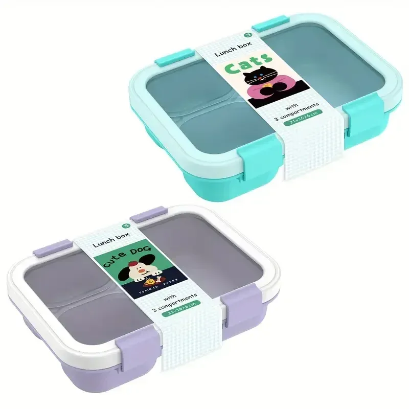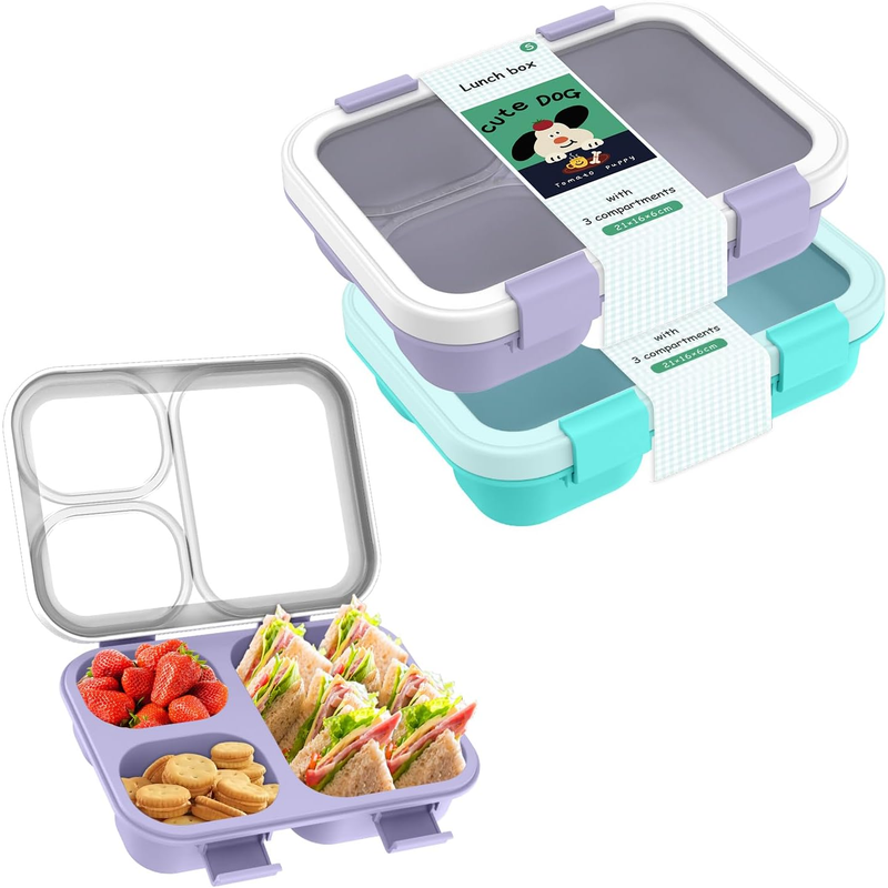 Lunch Box with Lids 3 Compartment Meal Prep Containers Reusable Leakproof Stackable Food Storage Containers for Office Travel