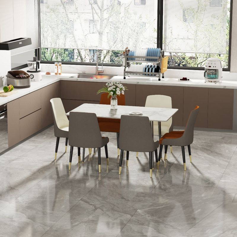 【DurableStructure】The kitchen table crafted from black painted metal legs with sintered stone top for visual appeal, the surface resistance to heat and cold damage, being waterproof with an absorption level near zero, easy to clean even you dirt it in accident