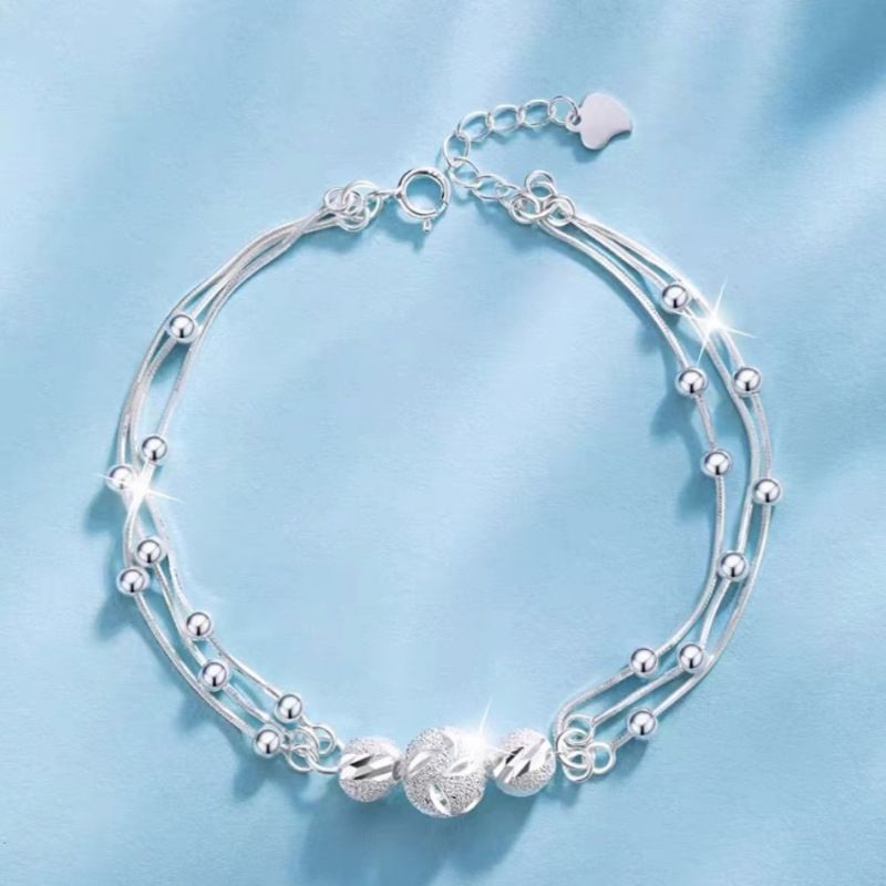 Luxury 925 Sterling Silver Lucky Beads Bracelets for Women Fashion Korean Design Multilayer Adjustable Ball Bracelets Jewelry