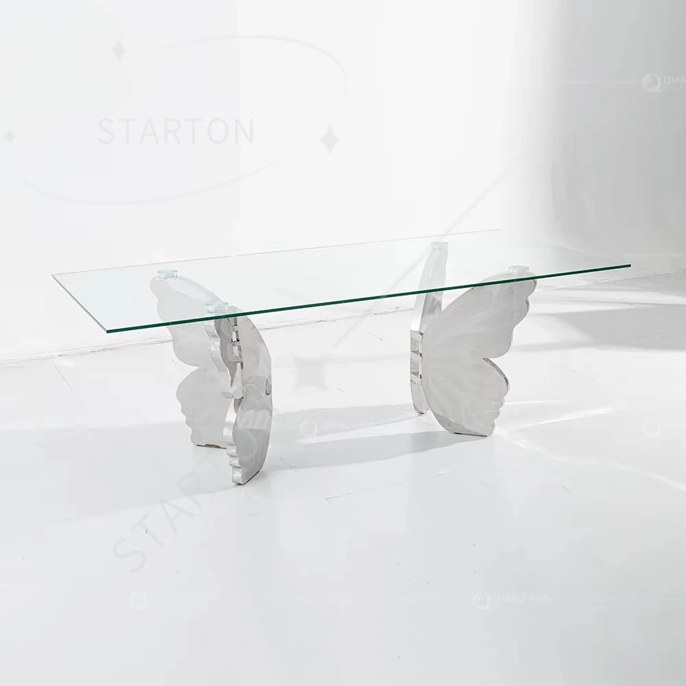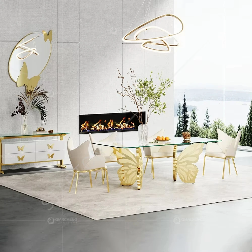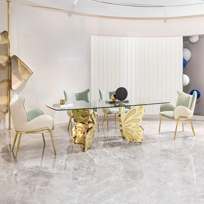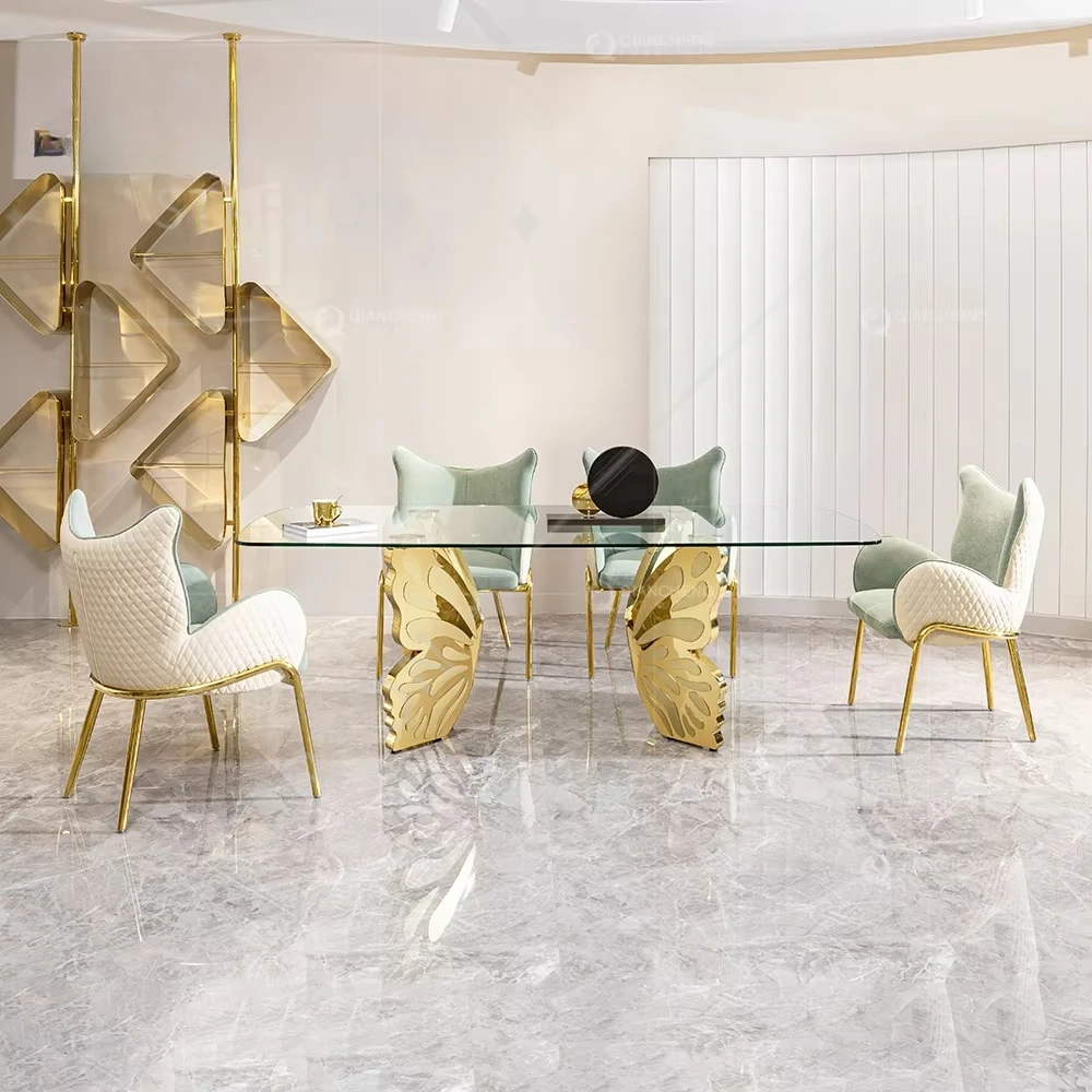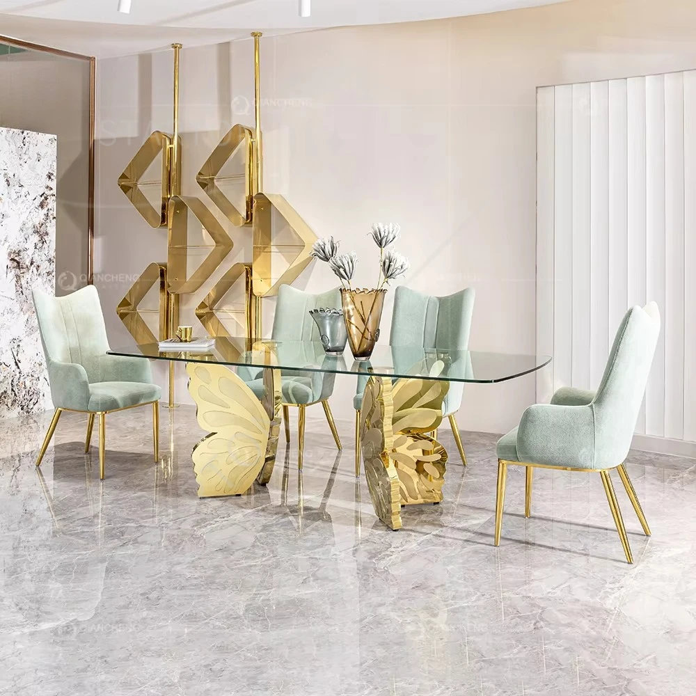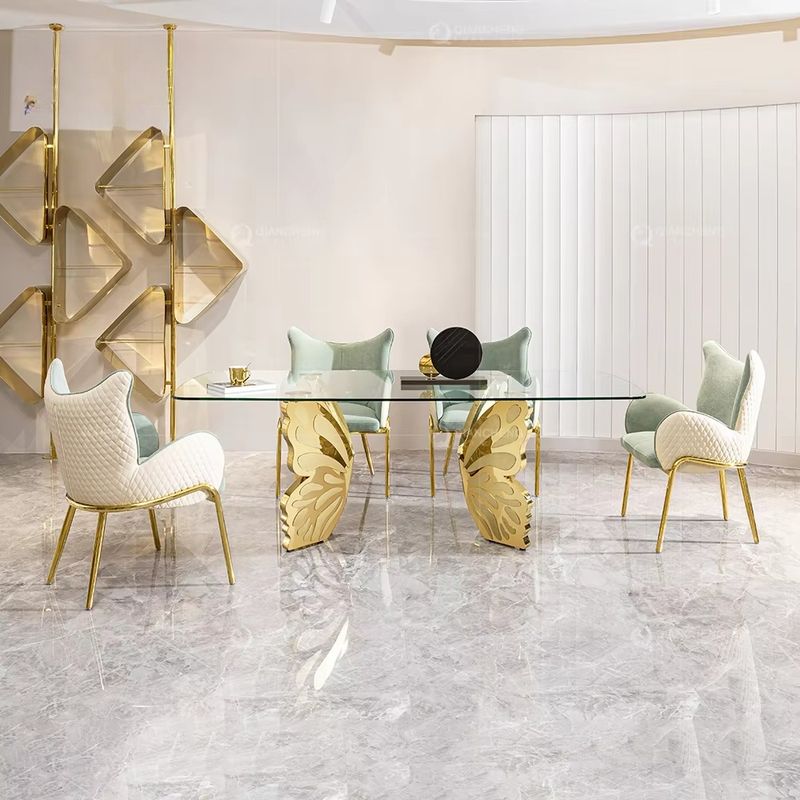 Luxury Apartment Furniture Dining Set Marble Desktop Gold Stainless Steel Butterfly Dining Table