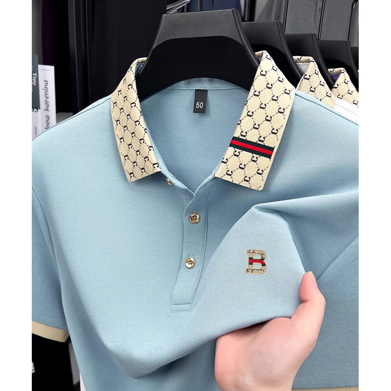 Luxury brand B letter embossed short sleeve polo shirt men summer lightweight breathable new fashion color blocked lapel T-shirt