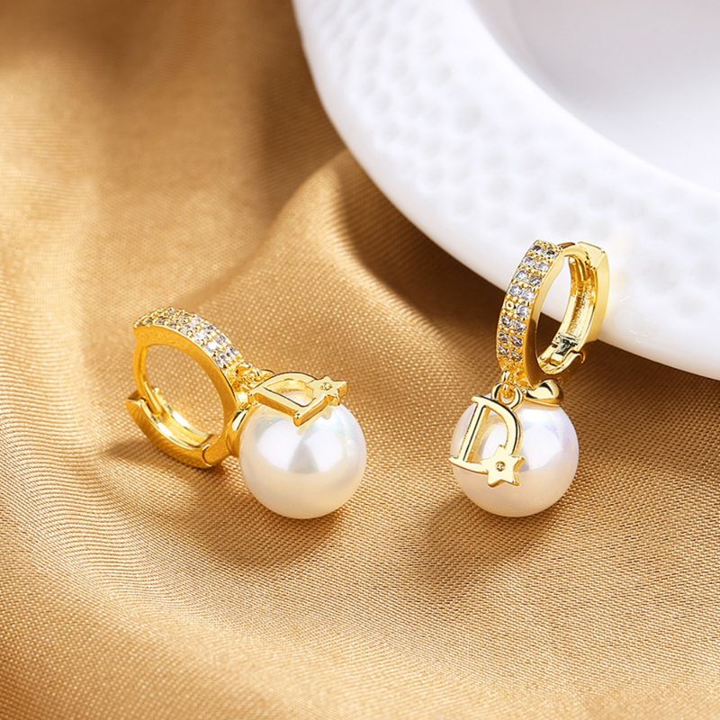 Luxury Brand Letter D Pearl Dangle Earrings for Women Temperament Gold Color Stainless Steel Zircon Hoop Korea Jewelry Accessory