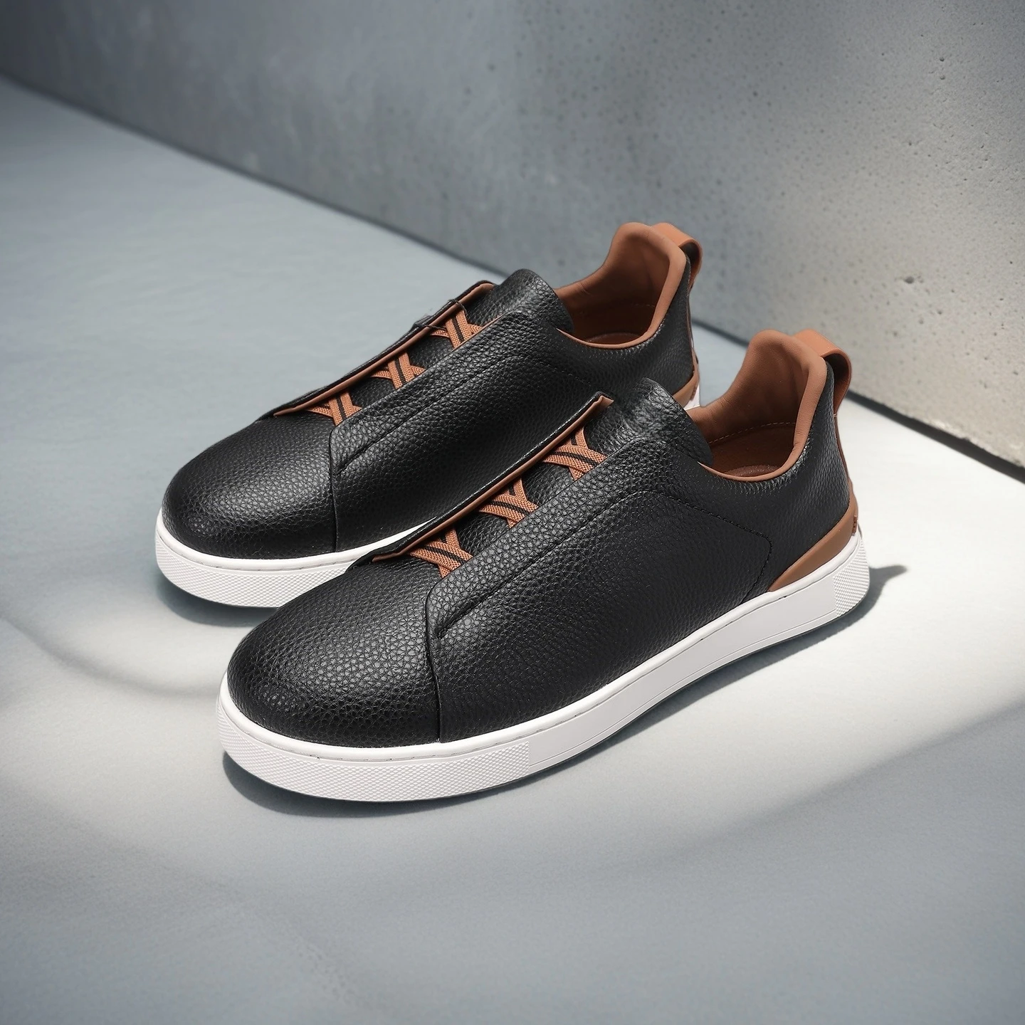 New low-top shoes are now available, featuring luxurious leathers that create a unique texture. The signature triple-cross elastic design adds a distinct style to the classic style. The lightweight construction relieves pressure, allowing for a smooth, effortless movement. Available in rich, natural tones, the lightweight texture offers versatile style for every occasion.