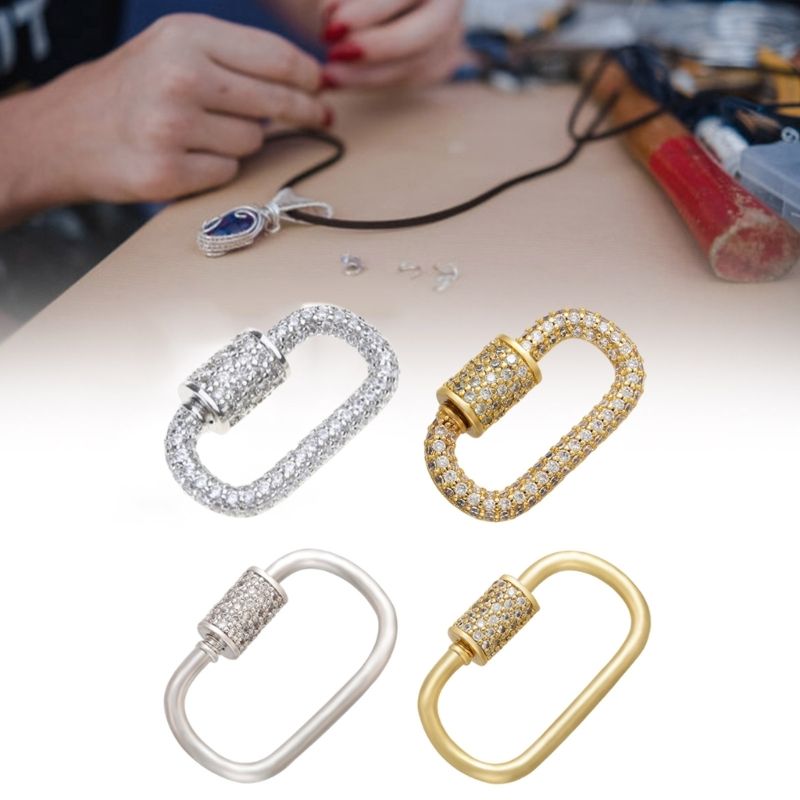 Luxury Carabiner Clasp Charms Jewelry Accessories, Brass Zircon Climbing Button Pendant Necklace Bracelet Connector Jewelry