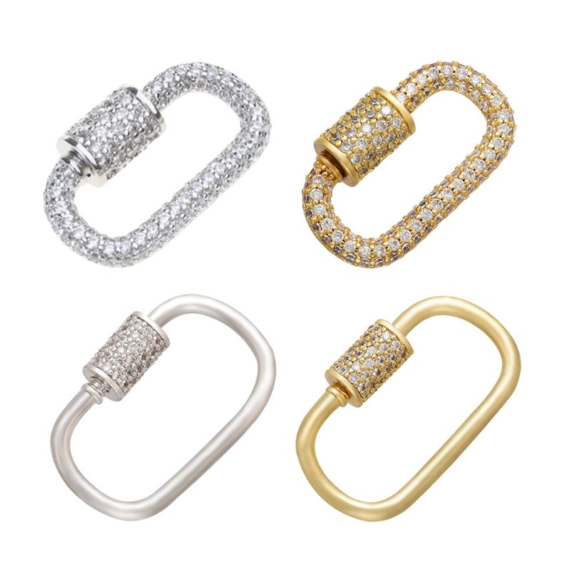 Luxury Carabiner Clasp Charms Jewelry Accessories, Brass Zircon Climbing Button Pendant Necklace Bracelet Connector Jewelry