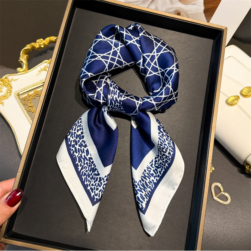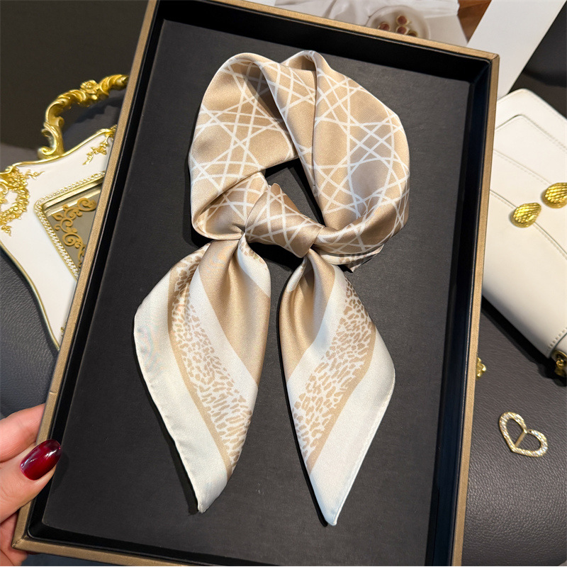 Luxury Chain Print Small Square Scarf Simulated Silk Thin Neck Scarf Fashion Sunscreen Headscarf For Women 70x70cm