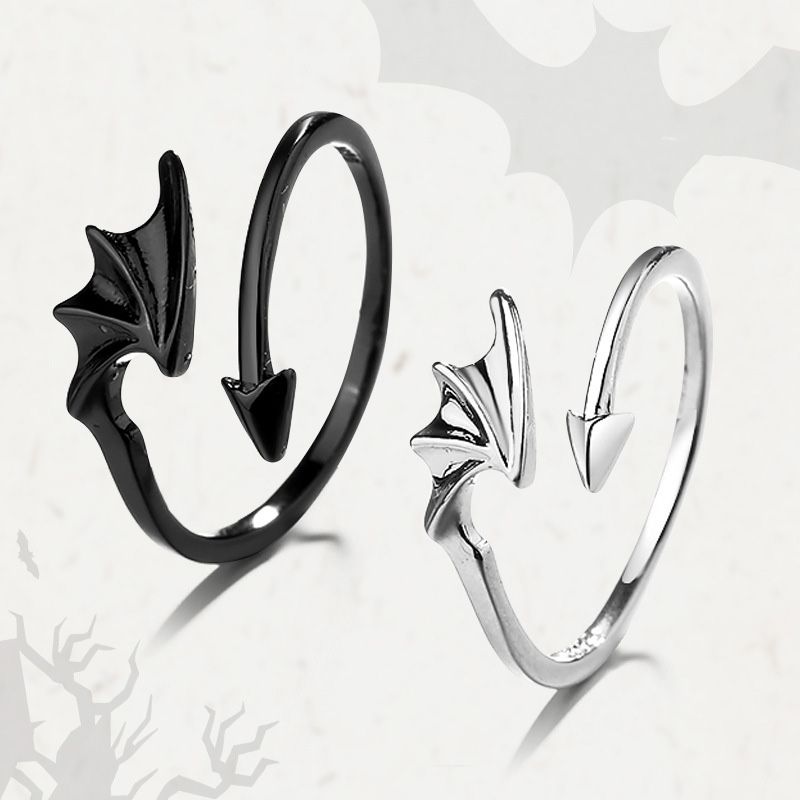 Luxury Crystal Angel Demon Couple Rings for Women Men Romantic Fashion Wings Design Adjustable Engagement Ring Wedding Jewelry