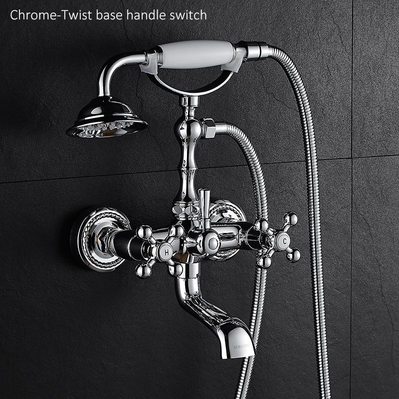 Luxury Crystal Handle Bathtub Gold Brass Faucet with Hand Shower Telephone Type Bath Faucets Sets Mixer Tap Wall Mounted EL8310G