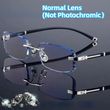 Luxury Diamond Cutting Photochromic Reading Glasses Men Business Rimless Eyeglasses Women Color Changing Presbyopia Eyewear