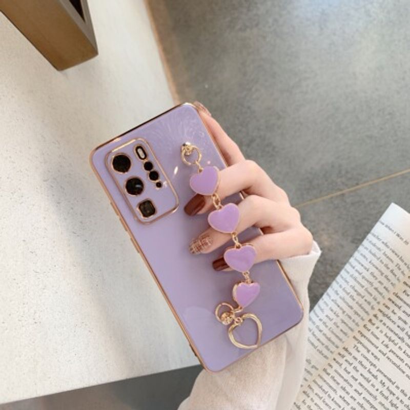 Luxury Electroplating Love Chain Wrist Bracelet Mobile Phone Case Pink Huawei P40