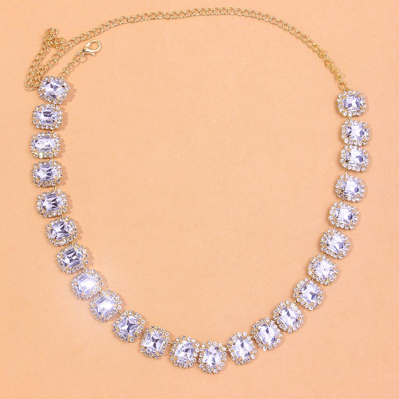 Luxury Fashion Elements Colorful Diamond Necklace Pink Silver