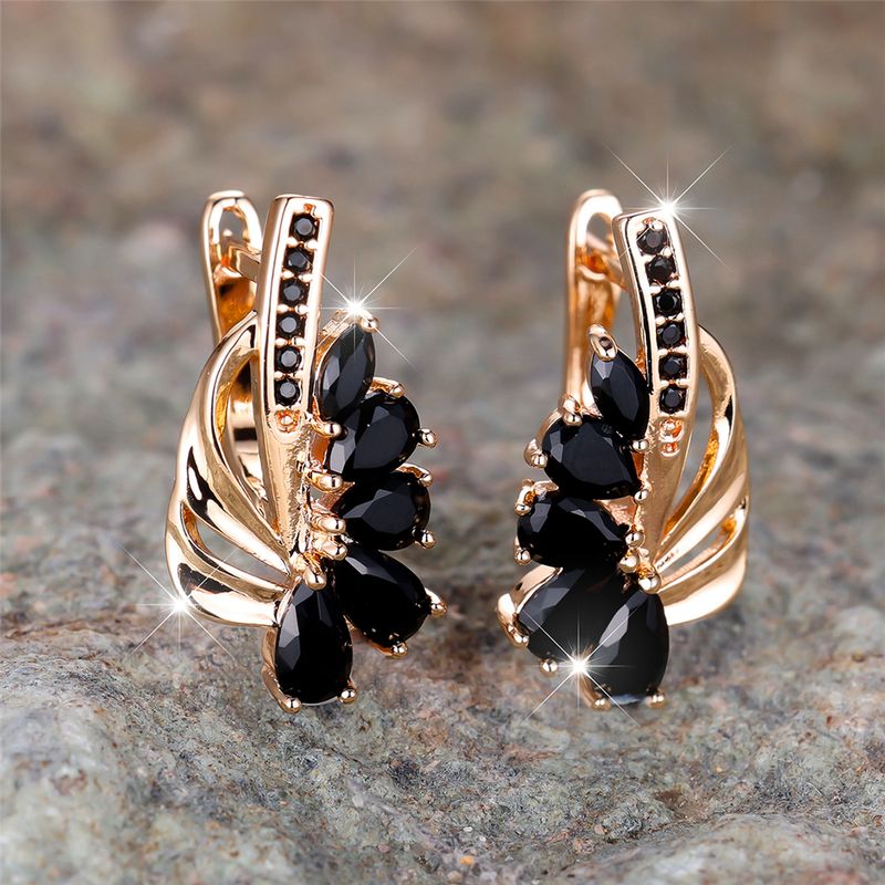 Luxury Female Blue Green Clip Earrings Charm Gold Color Trendy Zircon Stone Wedding Jewelry For Women