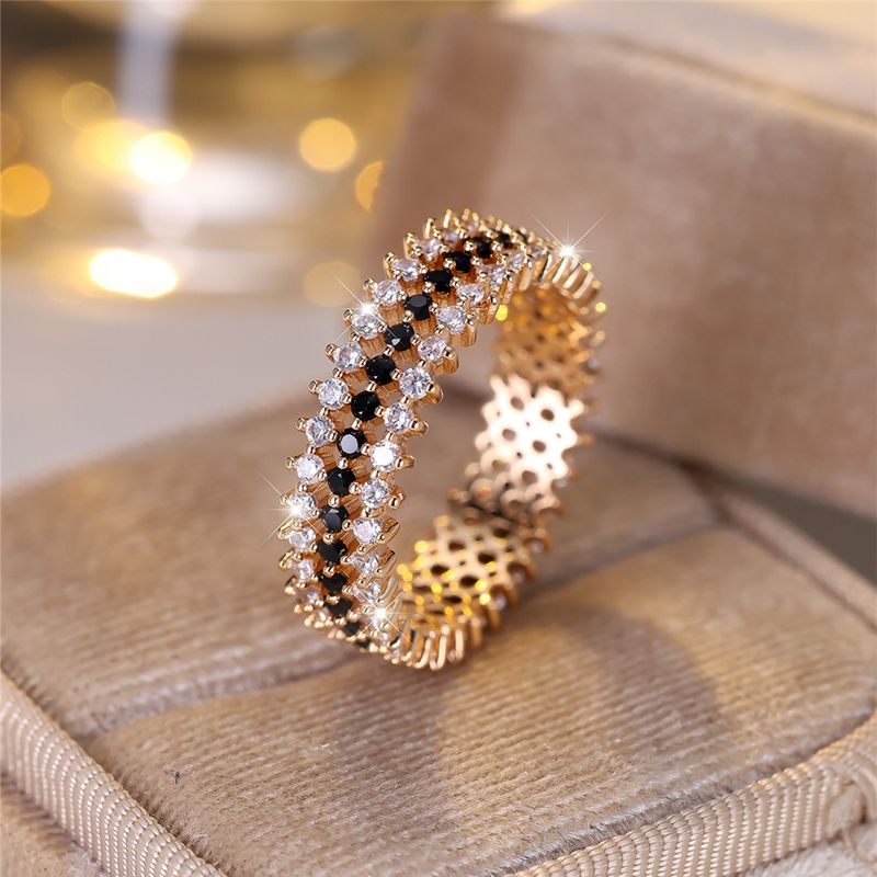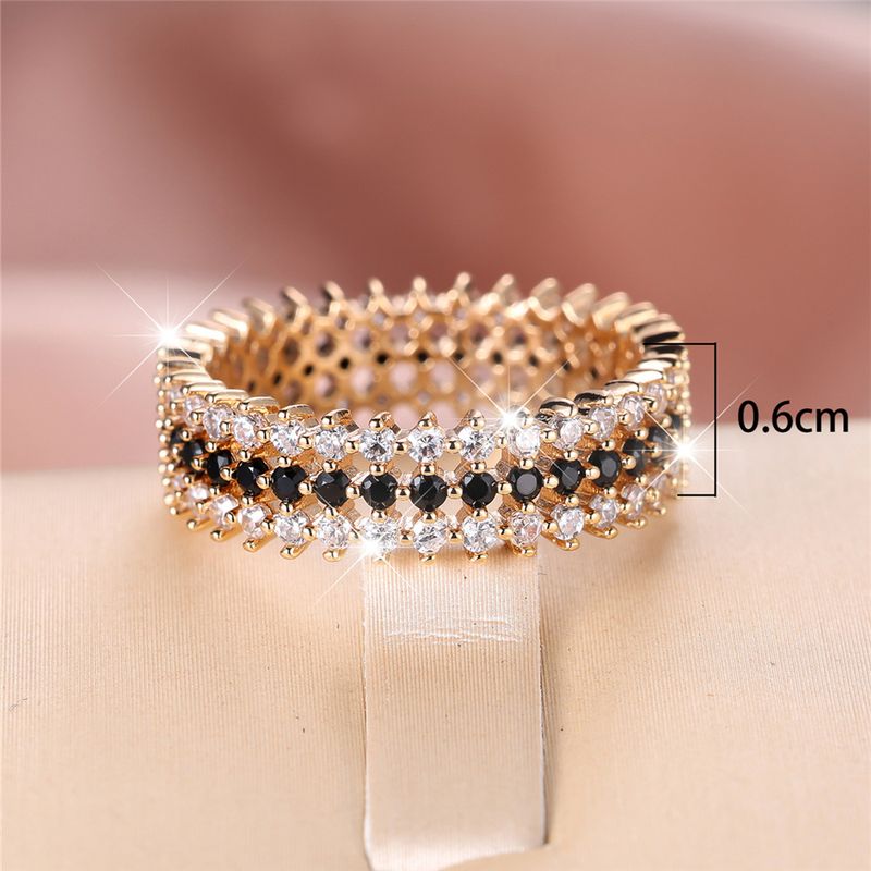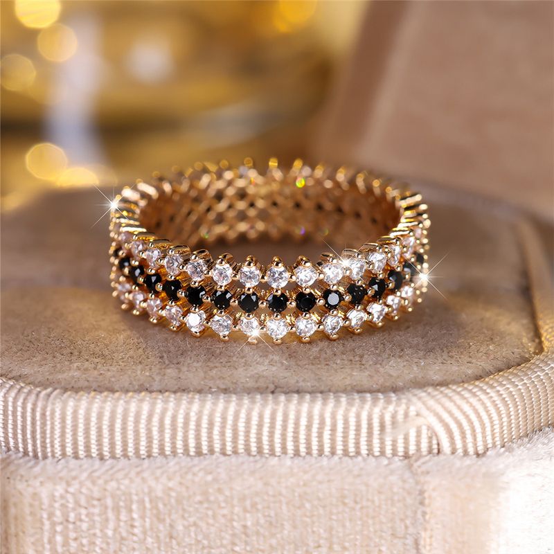 Luxury Female White Black Round Zircon Stone Ring Dainty Gold Color Wedding Jewelry For Women