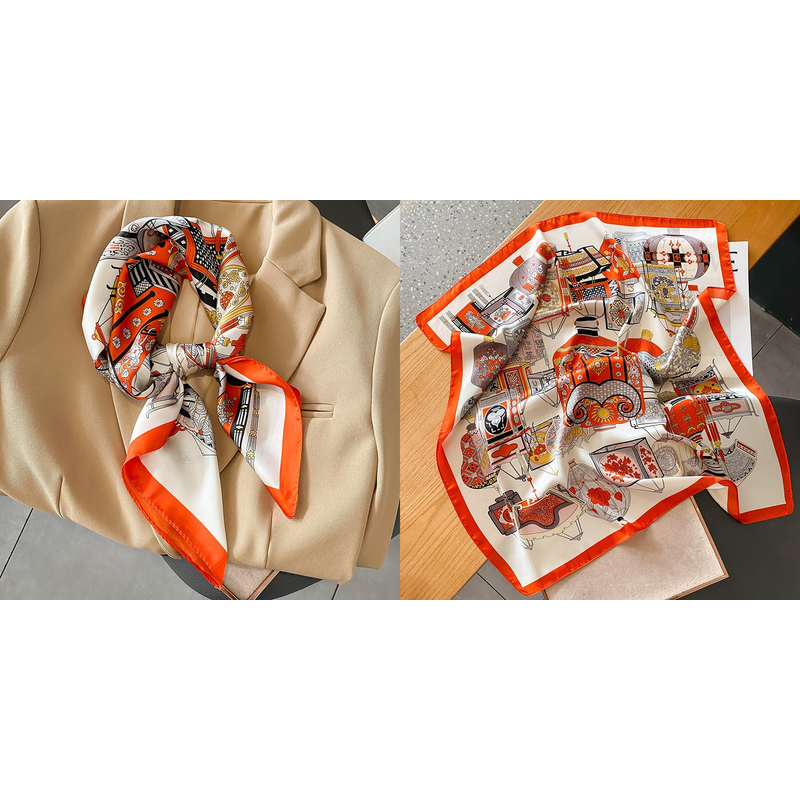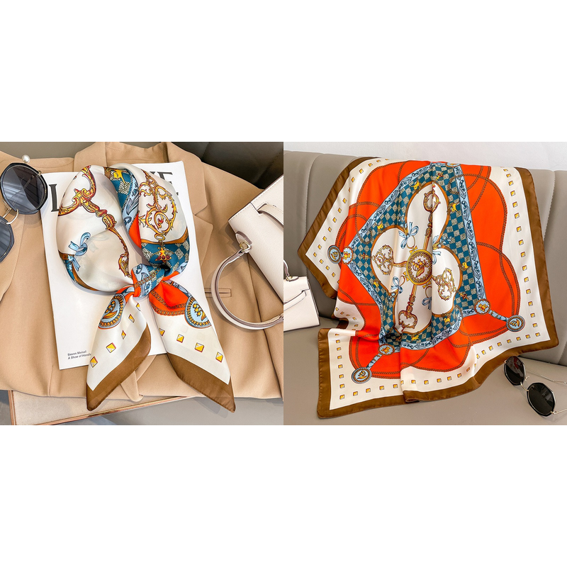 Luxury Floral Print Silk Square Scarf Women Soft Satin Kerchief Hairband Neckerchief Head Hijab Lady Headband Foulard Bag Ribbon