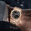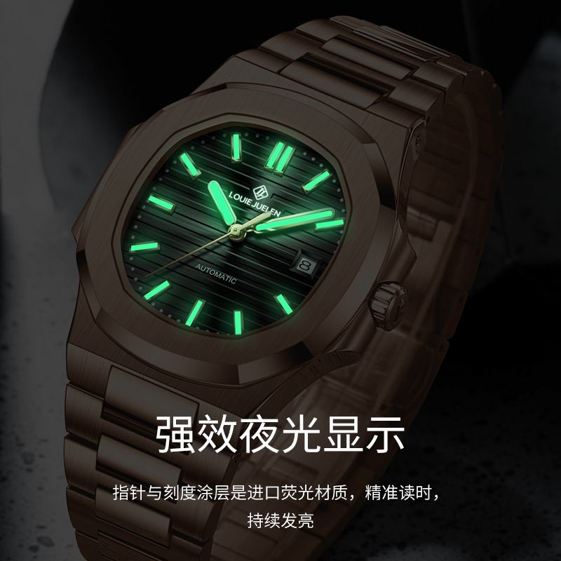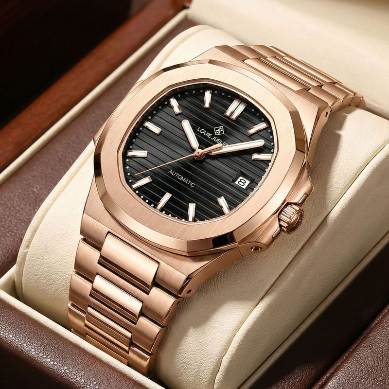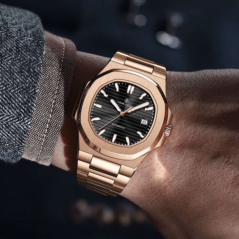 Luxury Gold Automatic Watch for Men LOUE JUEBEN Classic Octagon Design Stainless Steel Mechanical Wristwatch with Date Display