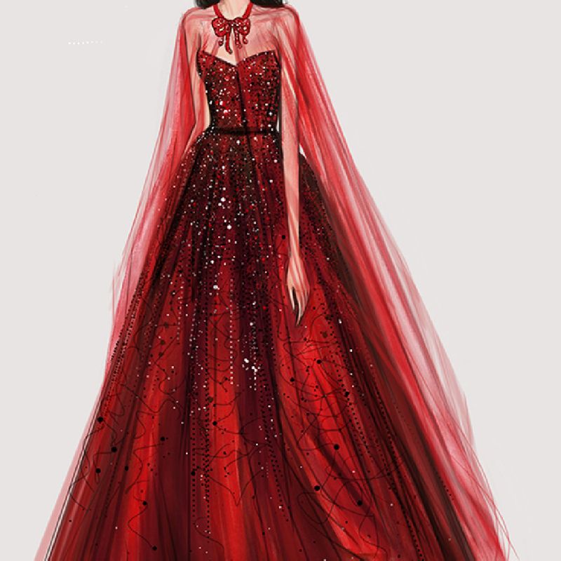 Luxury Heavy Industry Bridal Toast Dress Wine Red S