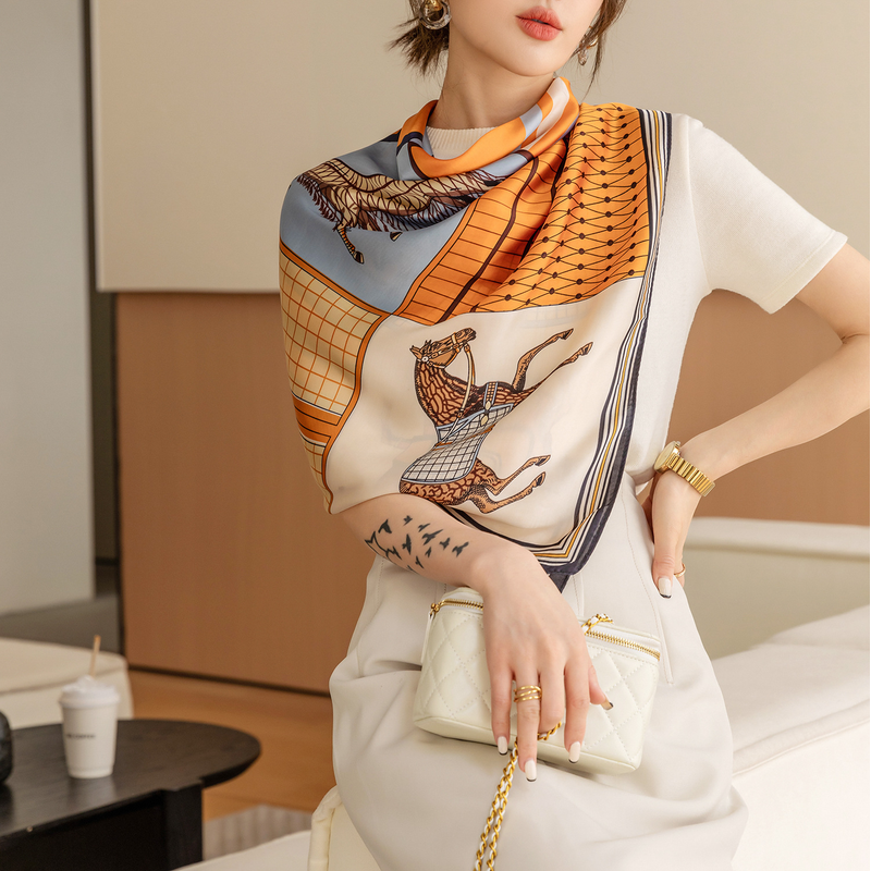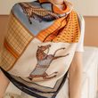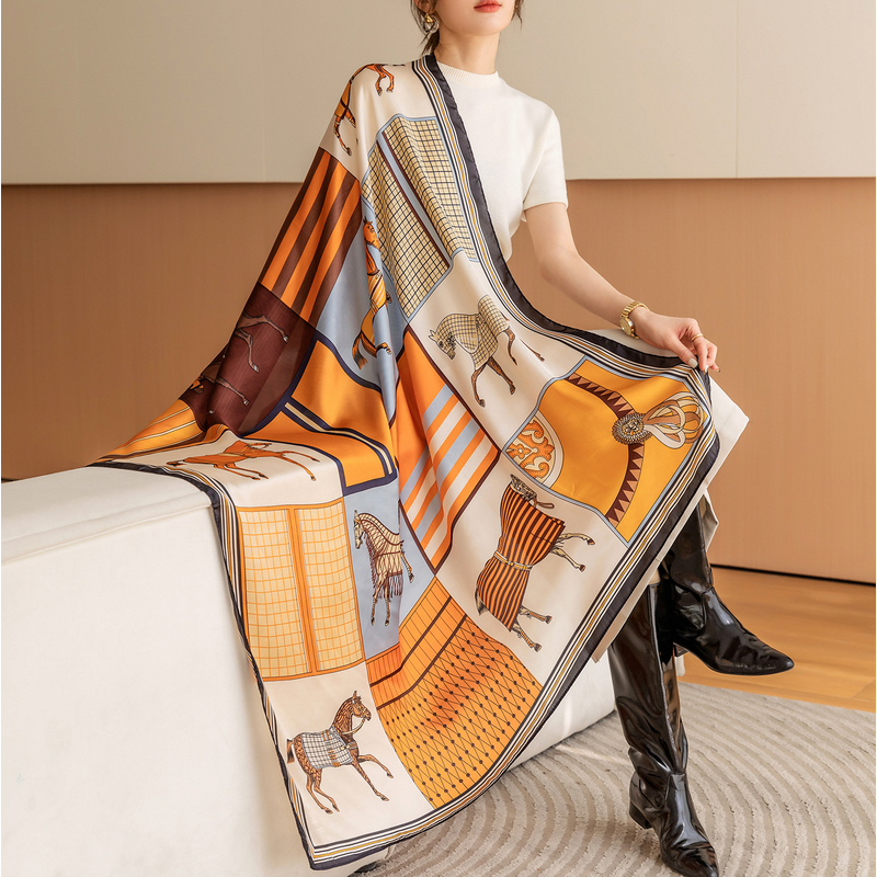 Luxury Horse Print Square Scarf Vintage Imitation Silk Shawl Scarf Women Windproof Outdoor Head Wrap 110*110cm