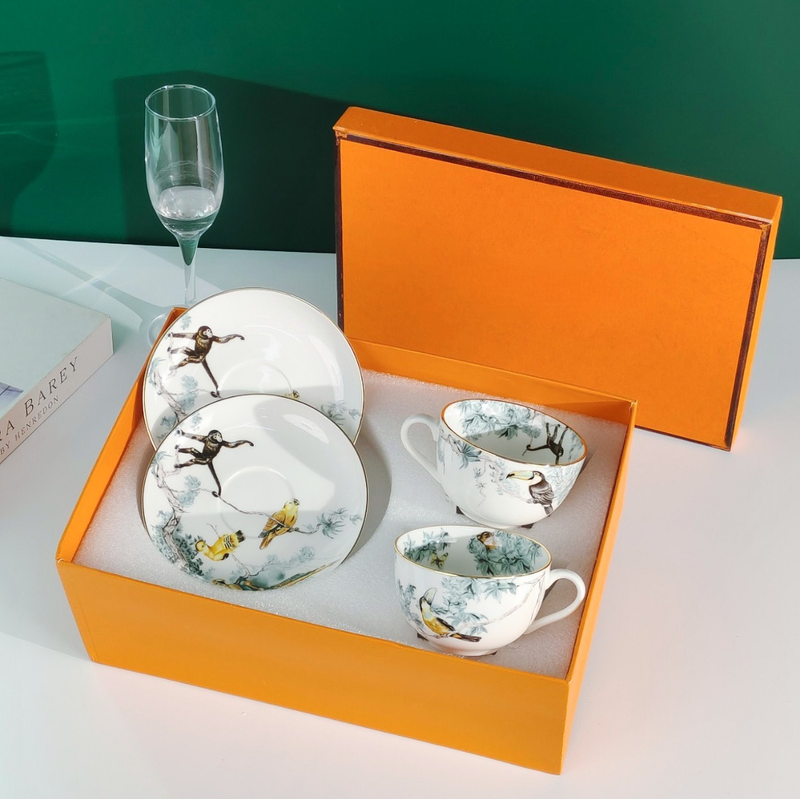 Luxury Jungle Bone China Coffee Cup Saucer Set Elegant Afternoon Tea Gift Box Wedding Birthday Present with Floral Motifs