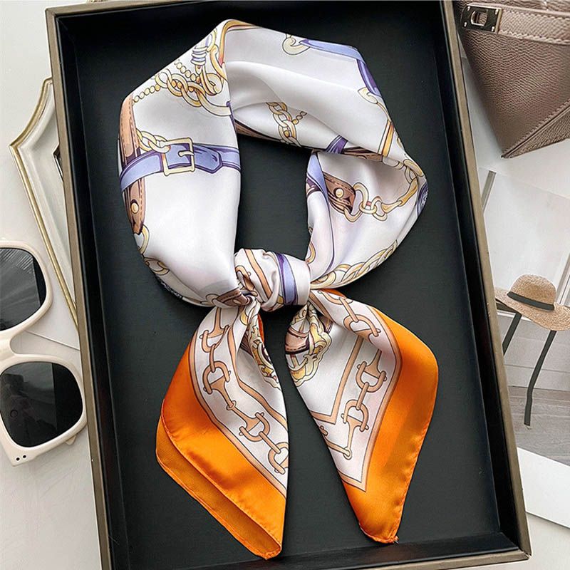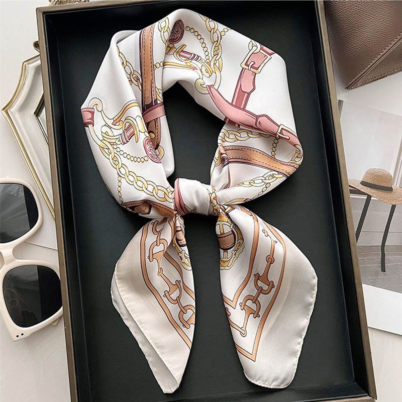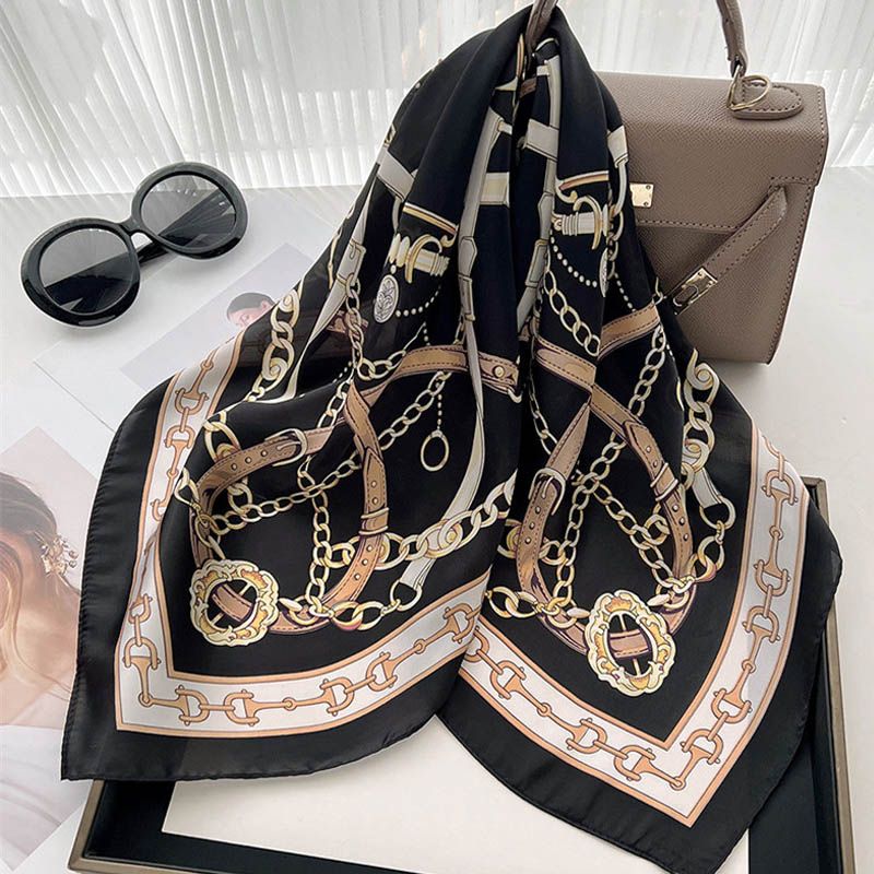 Luxury Lady Chain Print Square Scarf Simulated Silk Thin Neck Scarf Fashion Sunscreen Headscarf For Women 70x70cm