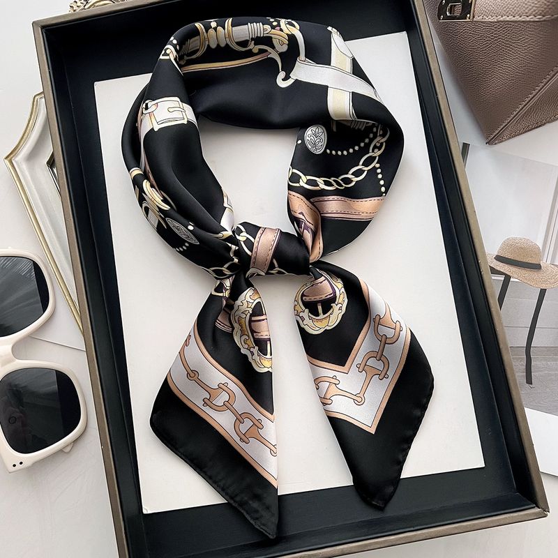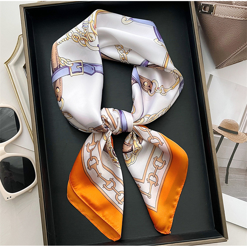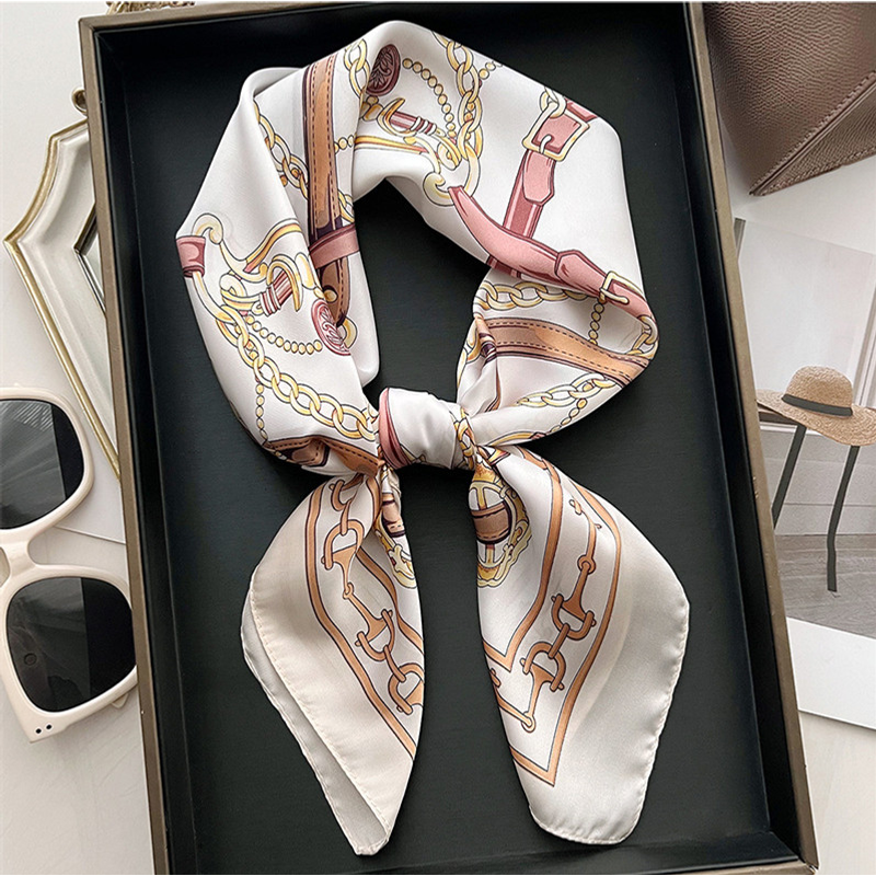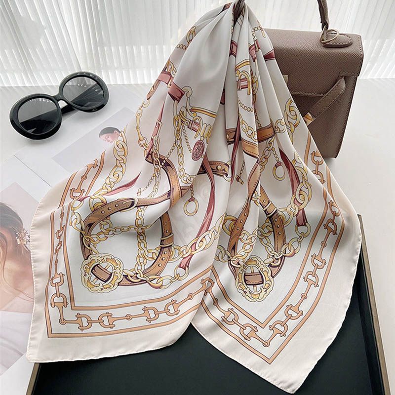 Luxury Lady Chain Print Square Scarf Simulated Silk Thin Neck Scarf Fashion Sunscreen Headscarf For Women 70x70cm