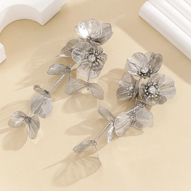 Luxury Long Metal Flower Tassel Fishtail Rose Earrings for Women Personality Temperament Golden Earrings Jewelry Wholesale