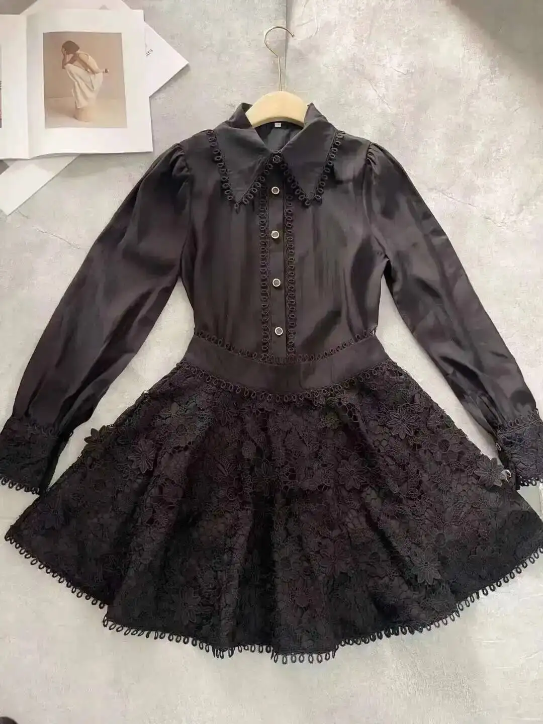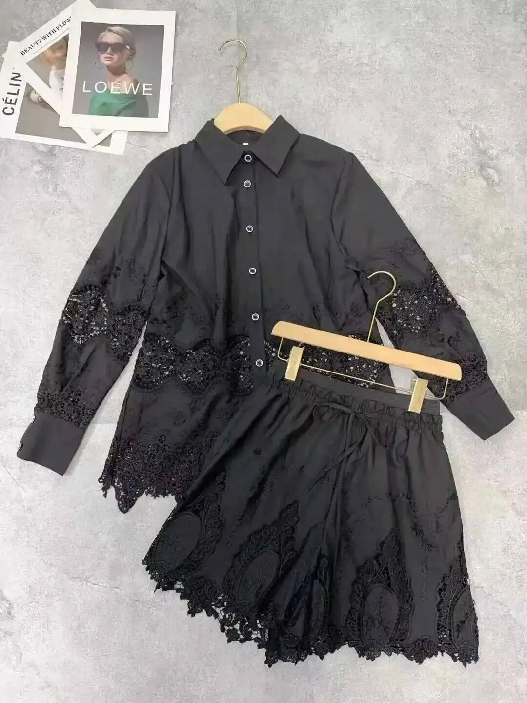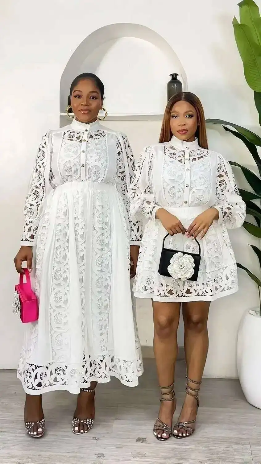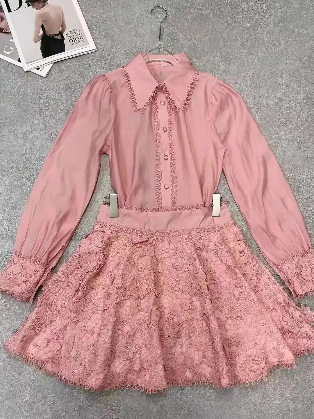 Luxury Long Sleeve Midi Dress Suits 2 Piece Women Skirts Sets Summer Autumn Hollow Out 3pcs Shirts Top Elastic Loose Big Dresses
