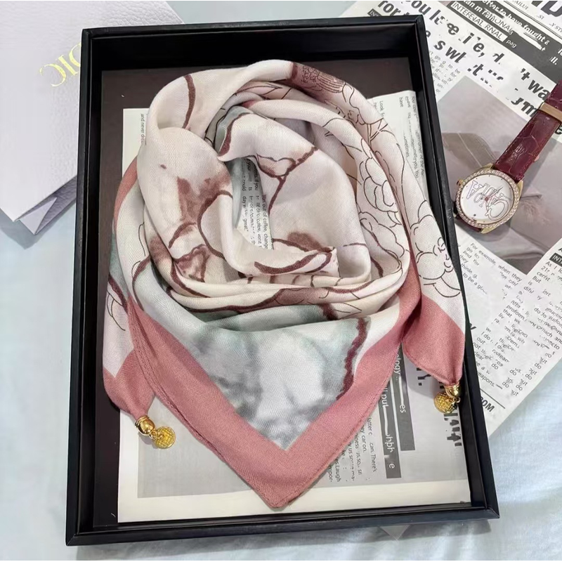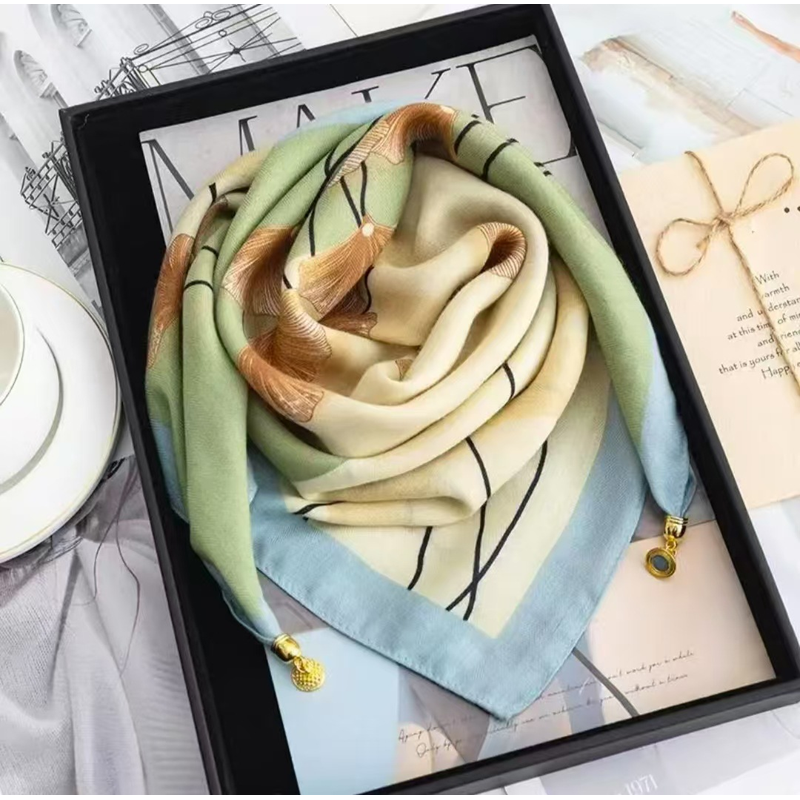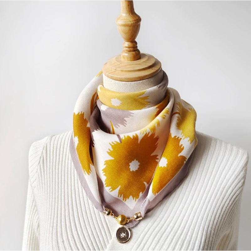 Luxury Magnetic Buckle Silk Scarf Women Print Square Scarf For Autumn Winter Warmth And Cold Resistance Fashionabl Scarves