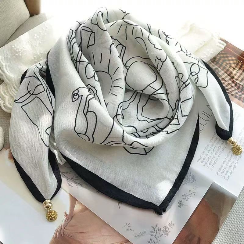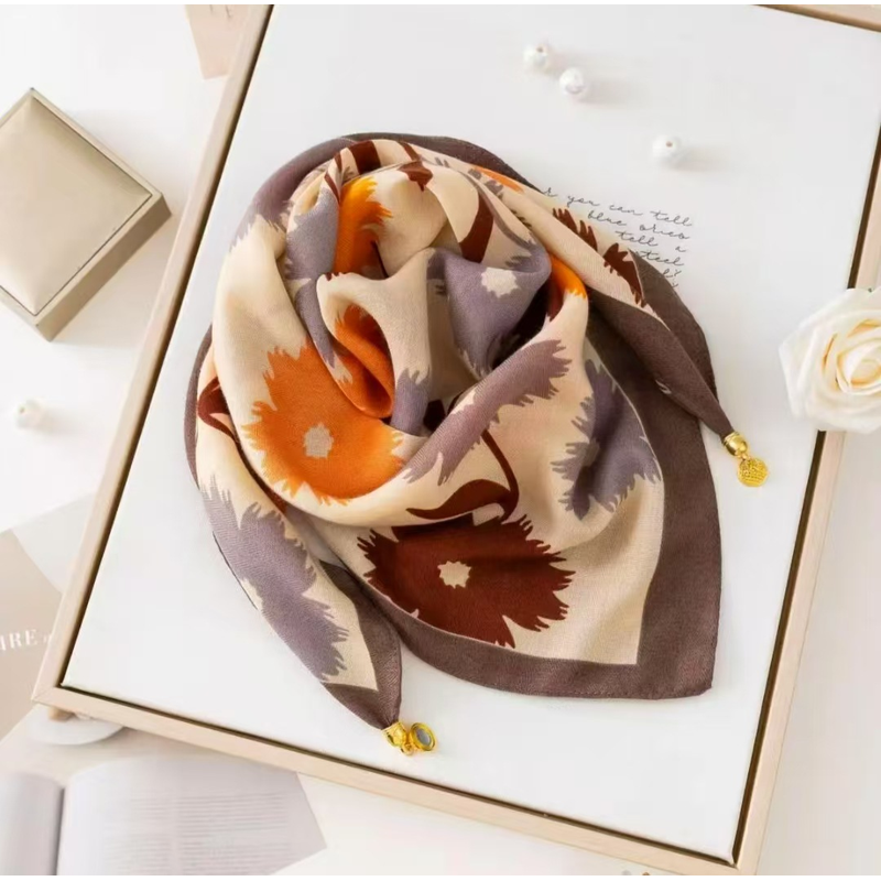 Luxury Magnetic Buckle Silk Scarf Women Print Square Scarf For Autumn Winter Warmth And Cold Resistance Fashionabl Scarves