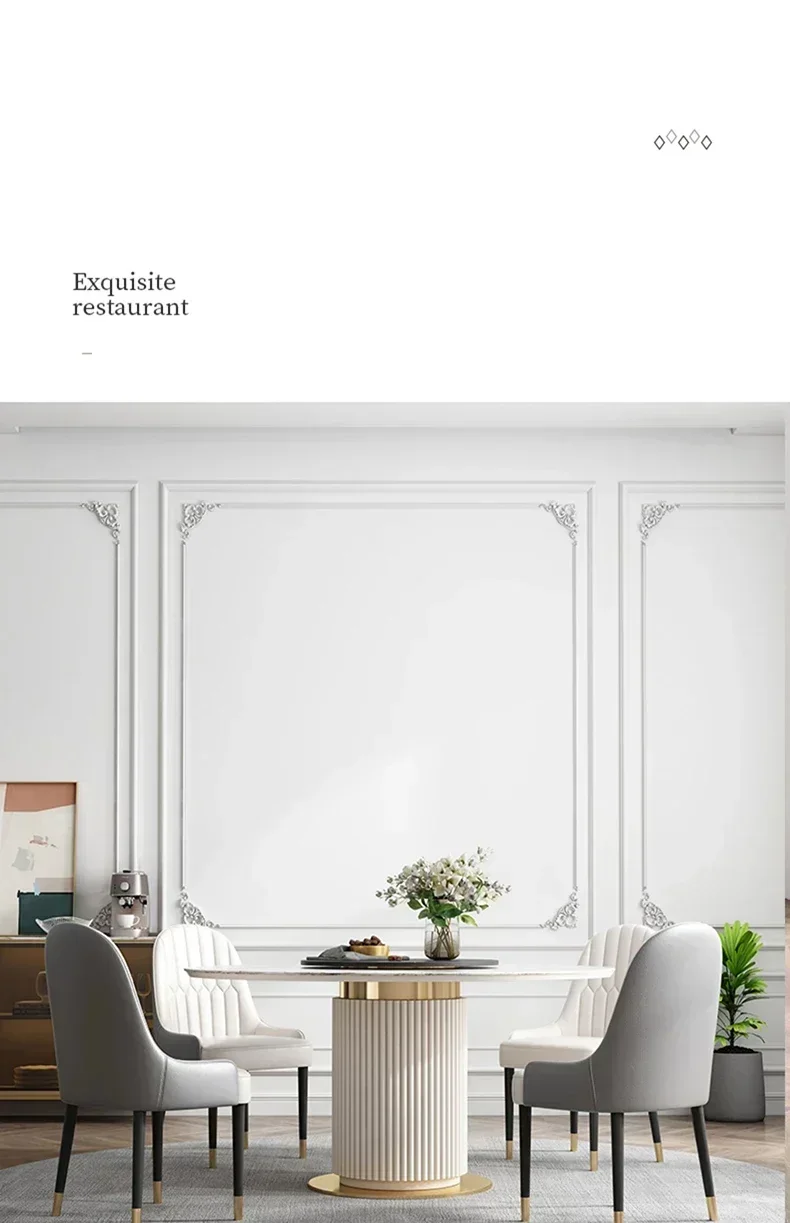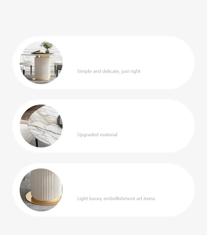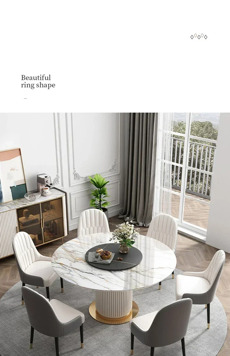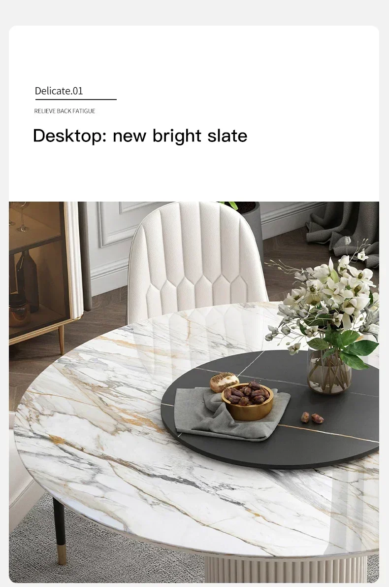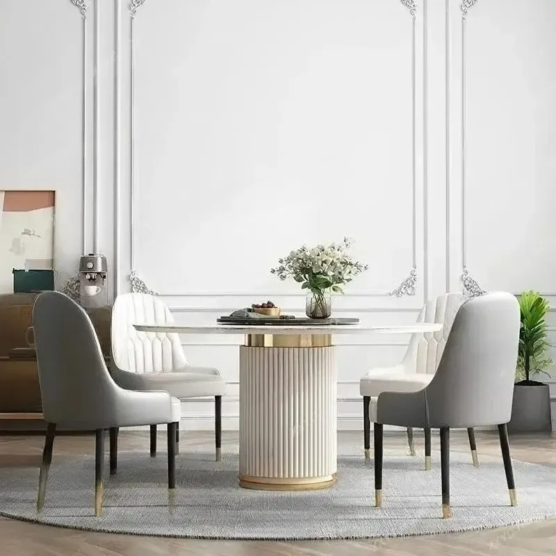 Luxury Marble Top Minimalist Round Sliding Dining Table with 4 Chairs for Small Apartment Home Furniture Kitchen Table