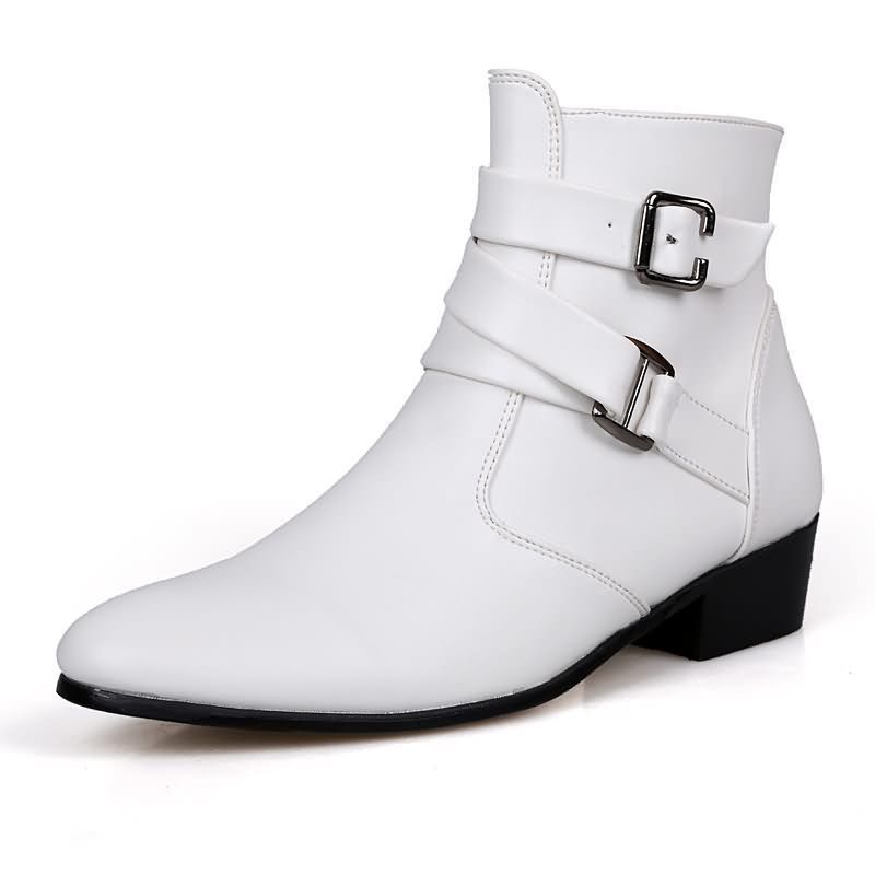 Hot Sale Luxury Chelsea Boots Men Pointed -toe Mens White Boots Black British Style High-heel Men Dress Boots Design Ankle Boot