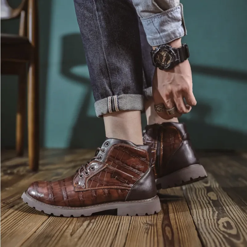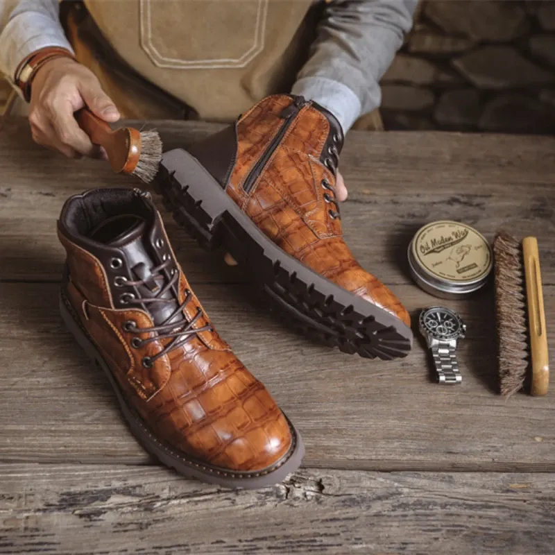 Luxury Men's Boots Italy Handmade Men's Ankle Boots Designer Retro Leahter Shoes for Men Non-Slip Work Boots botas para hombre