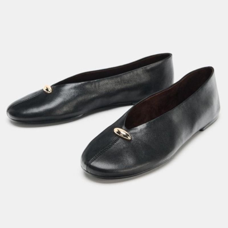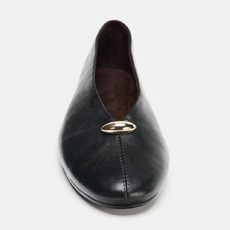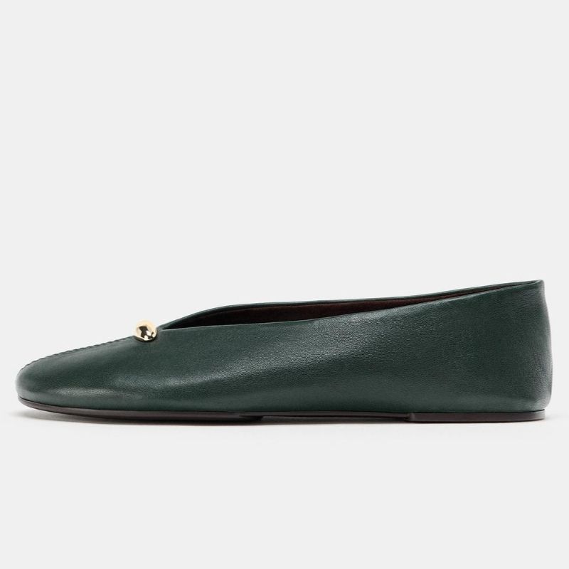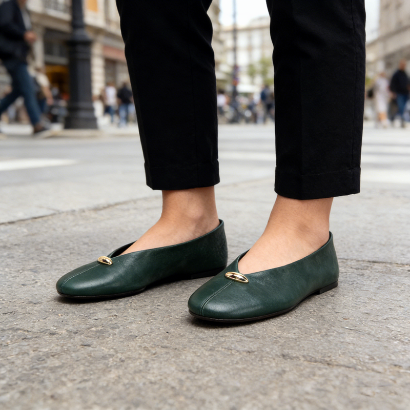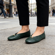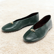 Luxury Metal Buckle Decoration Ballet Flats Women Green Leather Ballet Sneakers Light Soft Sole Comfortable Loafers for Ladies
