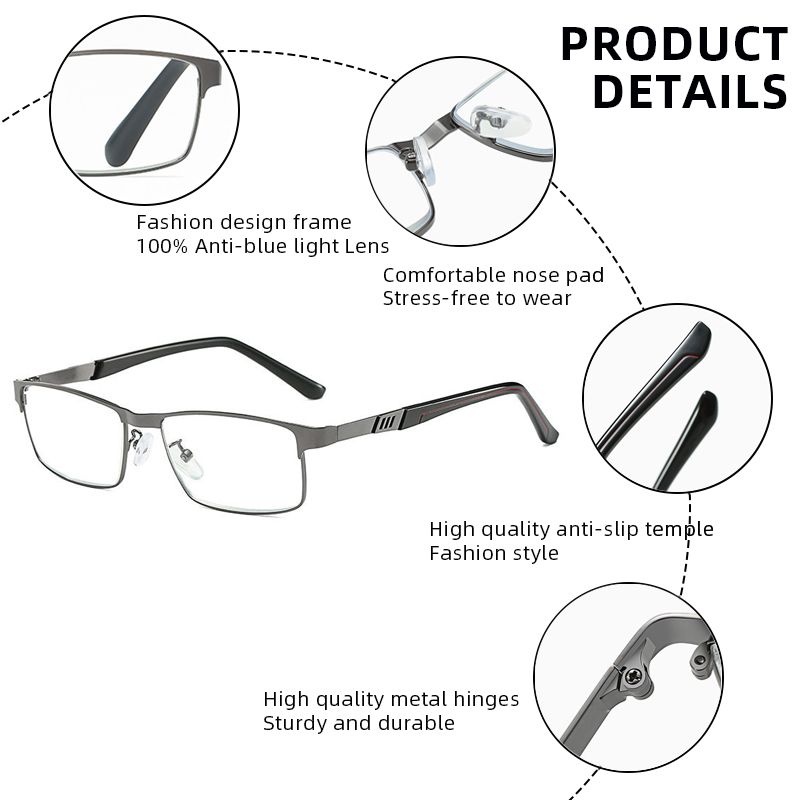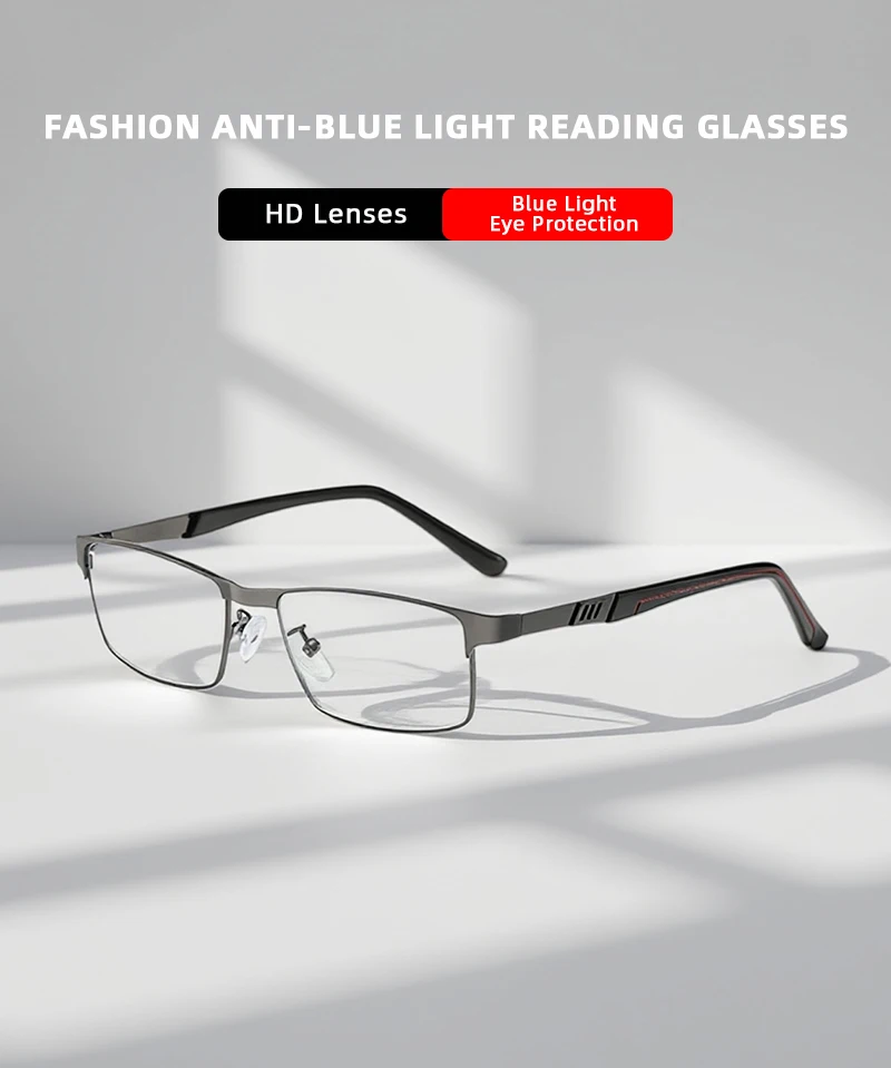 Luxury Metal Rectangle Reading Glasses Men Vintage Anti-blue Light Presbyopic Glasses Male Fashion Business Reading Glasses