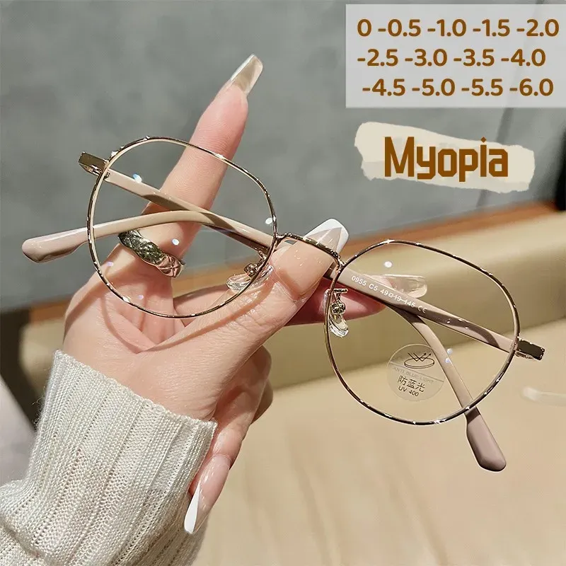Luxury Myopia Glasses Classic Vintage Anti-blue Light Eyeglasses Women Men Minus Diopter Eyewear Prescription with 0 -0.5To -6.0