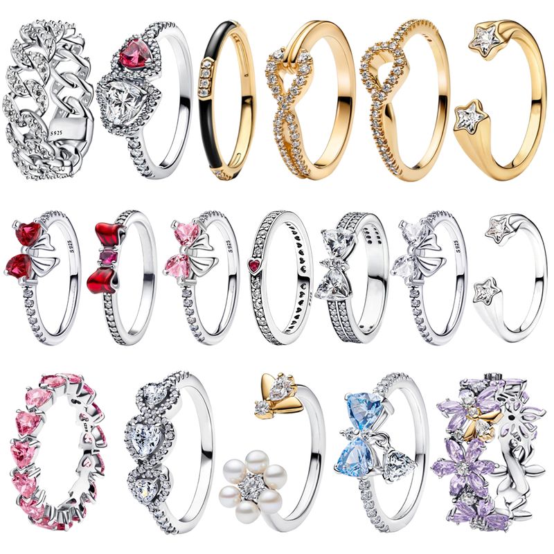 Luxury Original 925 Sterling Silver Heart-shaped Bow Flower Ring fit Women's High-end Jewelry Parties Valentine's Day Gifts