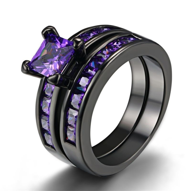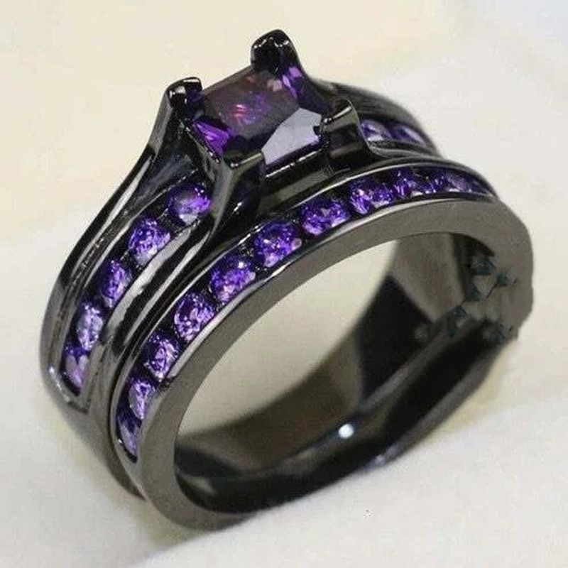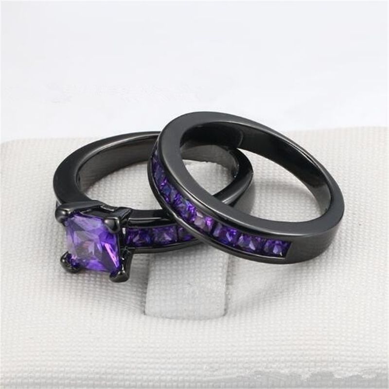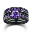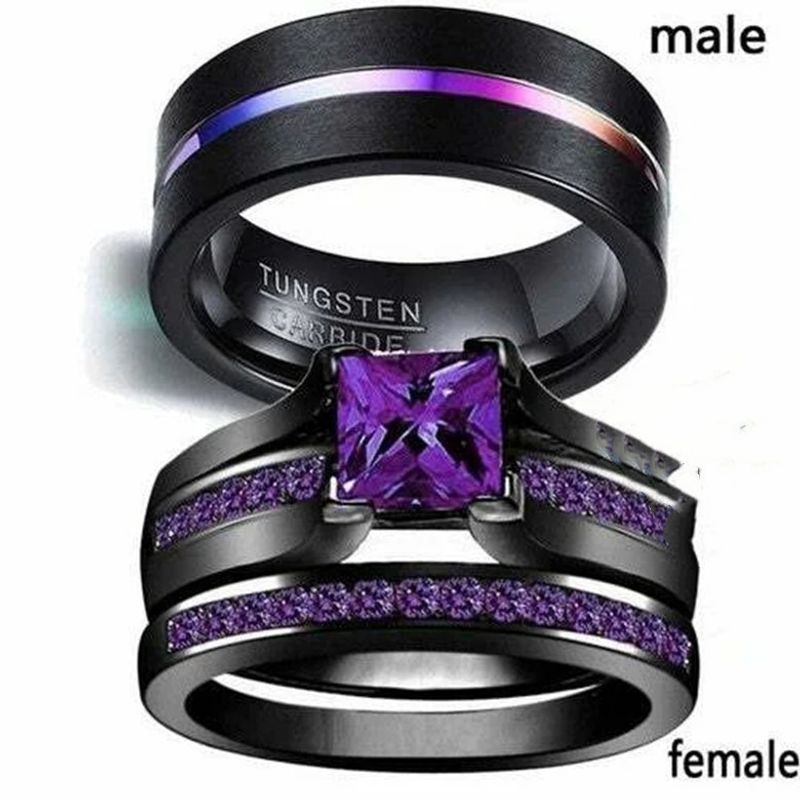 Luxury Purple Stone Black Gold Ring Set Women's Ring Female ring7 plus male ring11