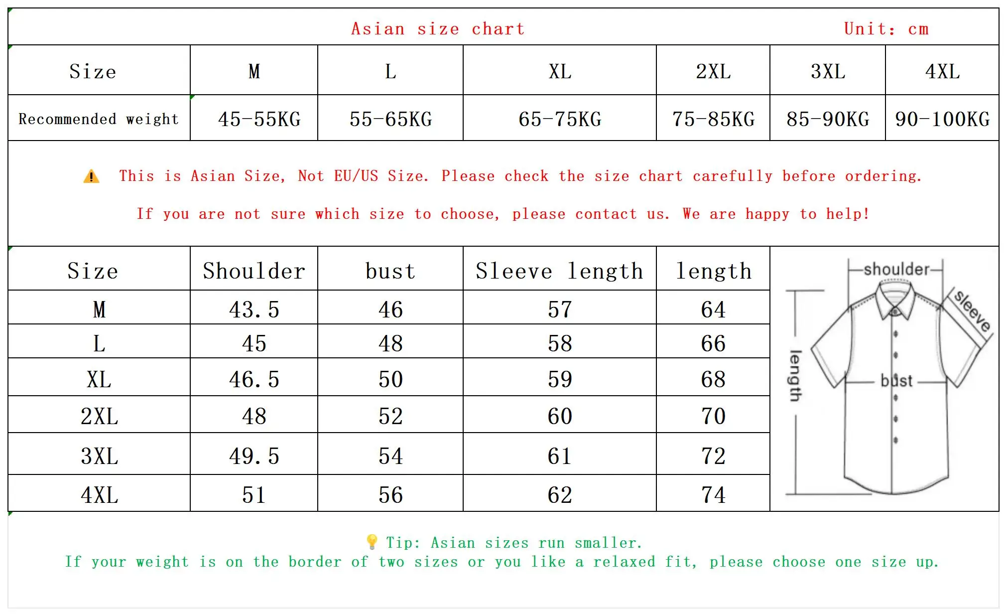 💡 Tip: Asian sizes run smaller.