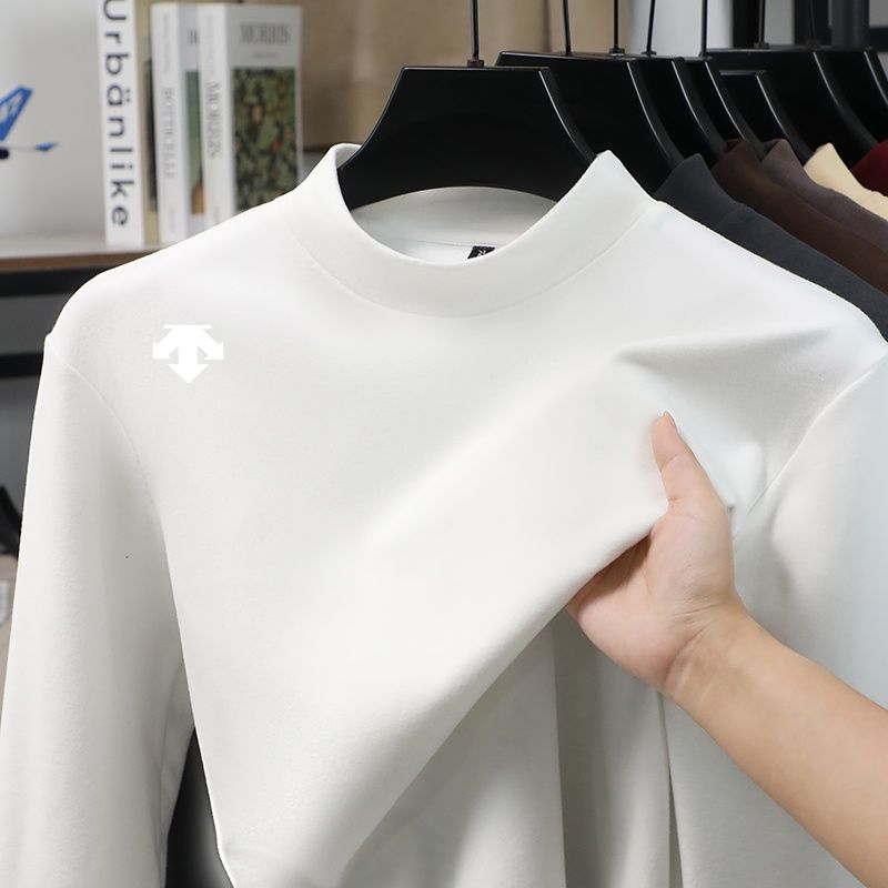 Luxury Quality Man Long-Sleeved T-Shirt Mock Neck Solid Color Printing Warm Spring New Long Sleeves Sports Fashion Mens Clothing