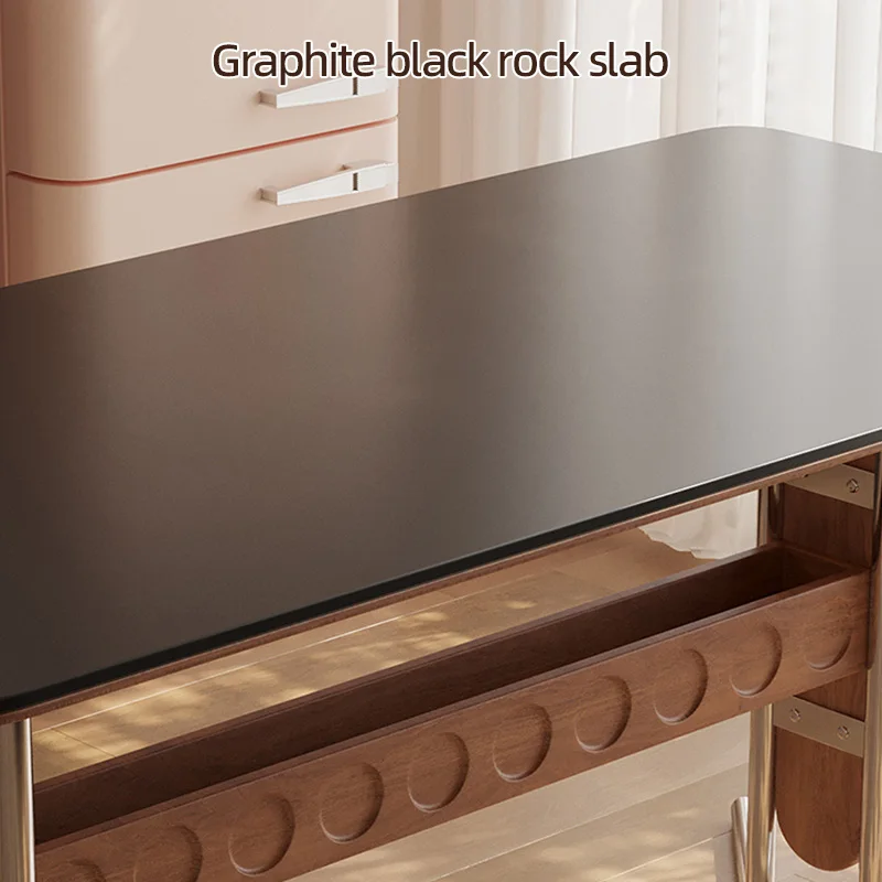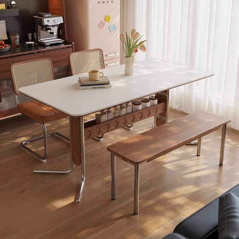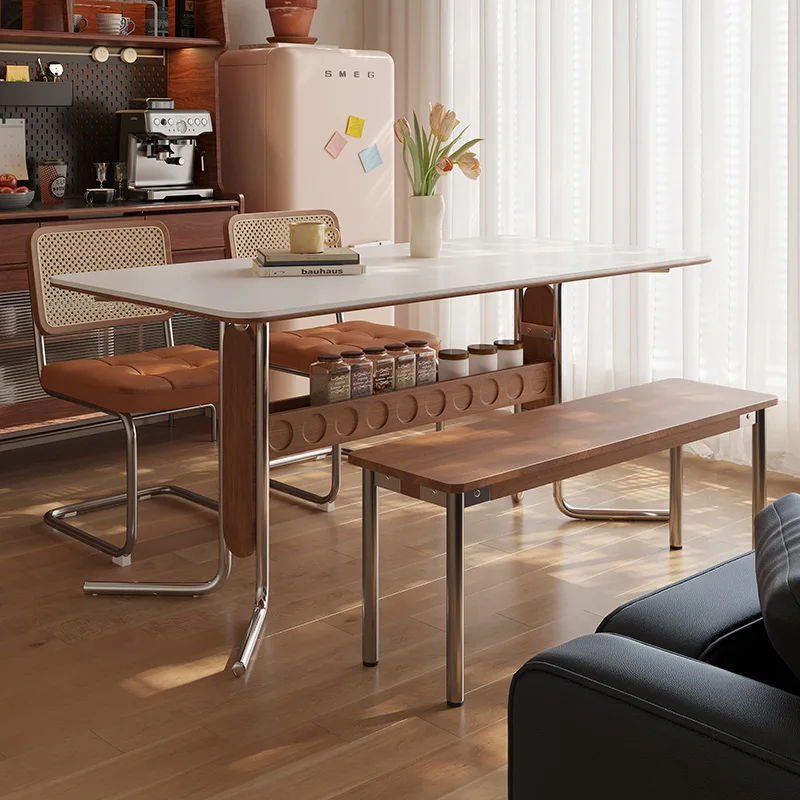 Rectangular Rock Slabs Dining Table for Apartment Modern Home Kitchen Tables with Storage Luxury Stainless Steel Legs Cafe Table